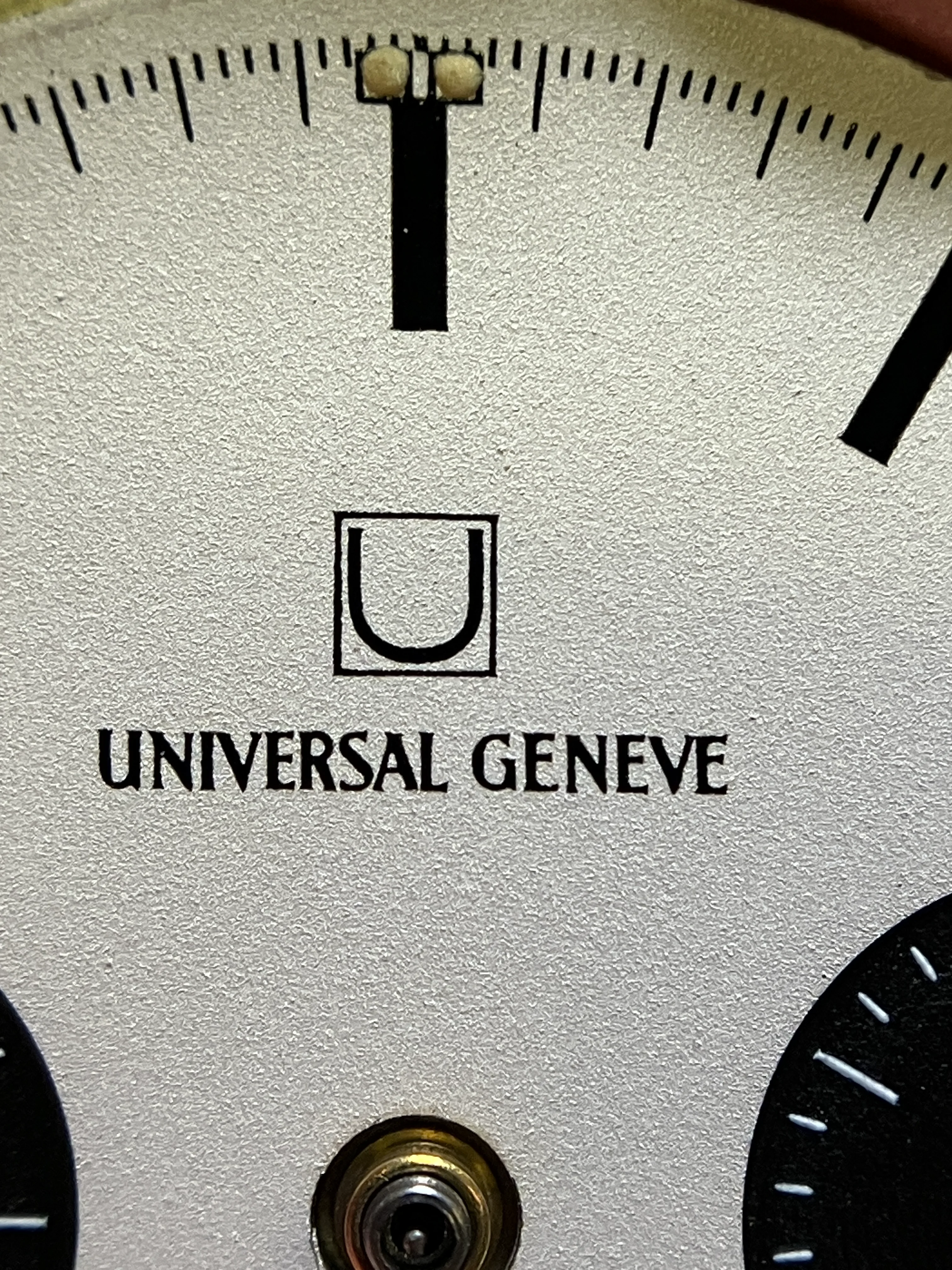 Interestingly, I checked https://alphahands.com/faq/universal-geneve-nina-rindt-serial-number-project/ and all of the 3 examples recorded in the 2568xxx range has the same characteristics: /01 case back, printed logo on dial, midsize sub register hands.