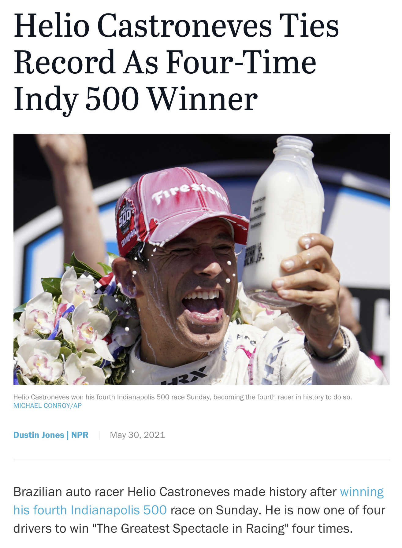 Congratulations to Helio Castroneves, Team Michael Shank Racing, Honda Indy V6 & TAG Heuer, Official Timekeeper of Indy500