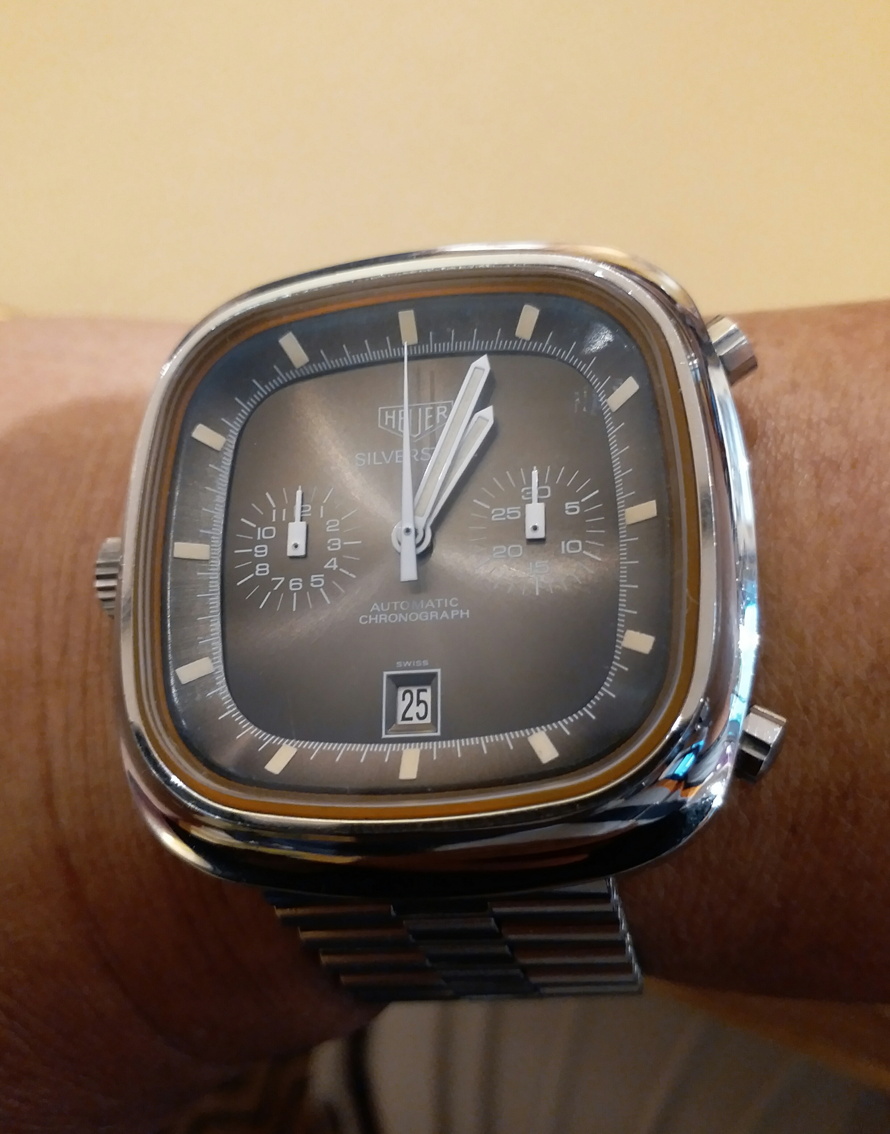 ·Sometimes my luck come in double, like the Chinese writing of double happiness. I successfully bid the Heuer's Silverstone 110.313F one weekend in Geneva, and the following week, I got my 1133B in Hong Kong, I simply couldn't believe it happened to me. Here are the new addition to 1133B... The Silverstone original NAS steel bracelet just happened to fit my wrist because the clip has a small spring for slight extension. The movement is clean and in very good condition..Even though people prefer the blue dial but I honestly prefer the Fume (brown dial), it changes according to the light, and besides my 1133B is already in Blue...