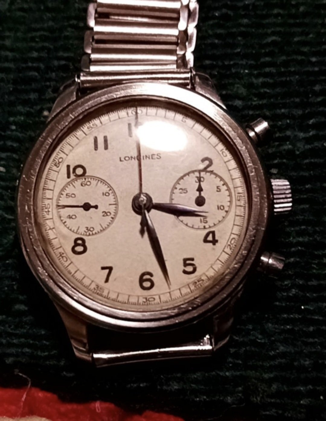 I'm more of a dial guy in terms of eval and going through the first 15 or so pages of this thread did not see any examples with the Longines logo in san-serif as this example has which is bringing me to think redial. But i do know that that logo was sometimes used in the 40s as well so wanted to get some of your thoughts and hopefully blessings before I pull the trigger.