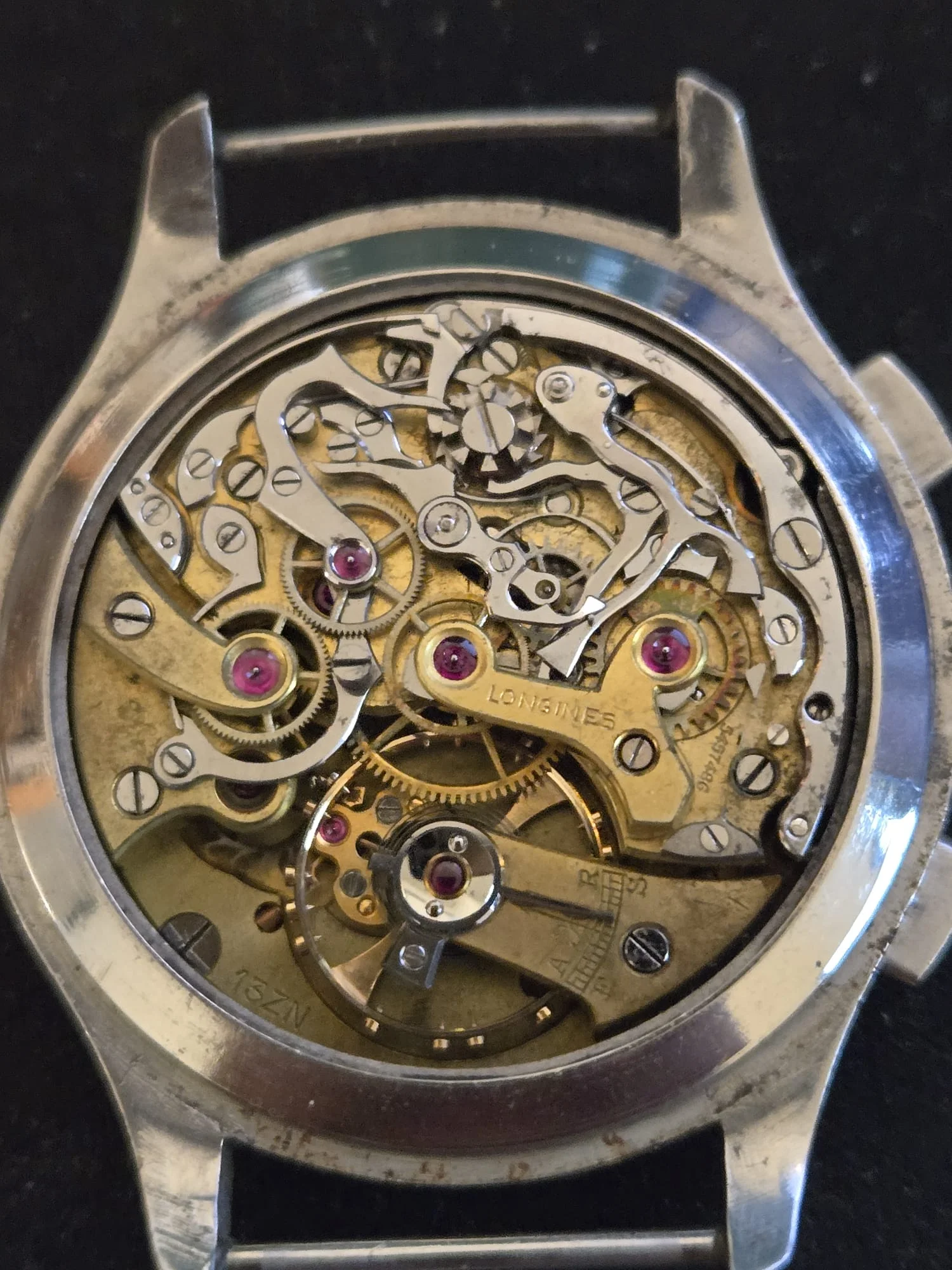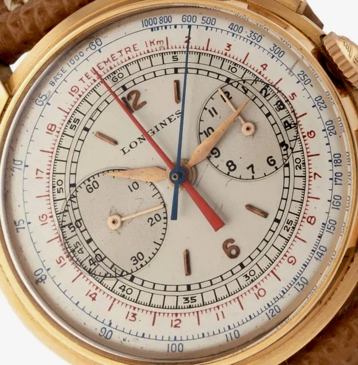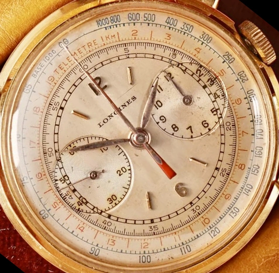 Complex dial/subdials, no obvious errors at first glance. Different fonts for the numerals (I could recognize at least one open six, some flat three, some round), logical arrangement, size of the LONGINES signature, edges of the subdials, length and style of the hands - everything seems in order (considering the quality of the photos).
