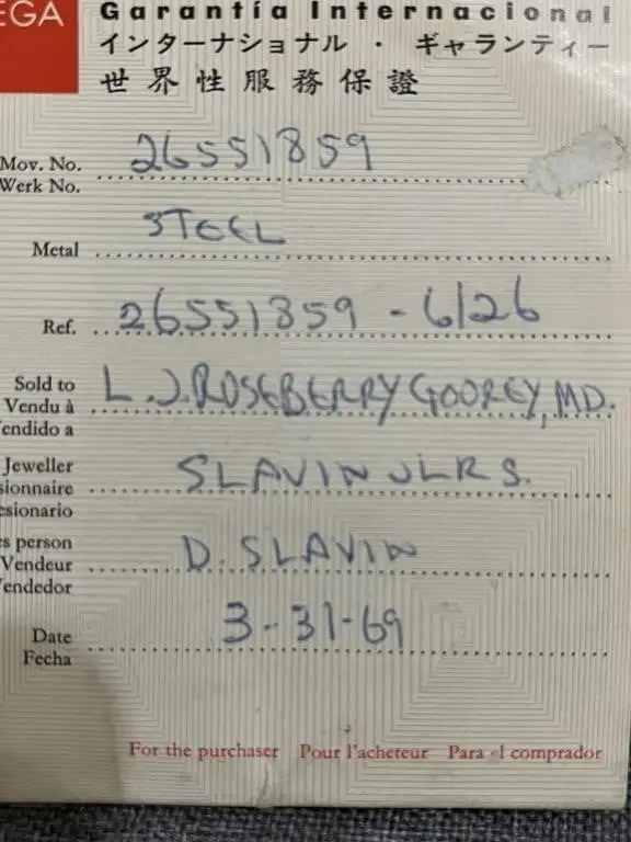 It’s a shame that the bezel was lost, but pretty amazing that all the original materials have survived, even the packing materials! Interestingly, the model on the warranty is filled out as a 6126, but the serial number matches the movement (I found the same number posted by NASA, but don’t know why: )