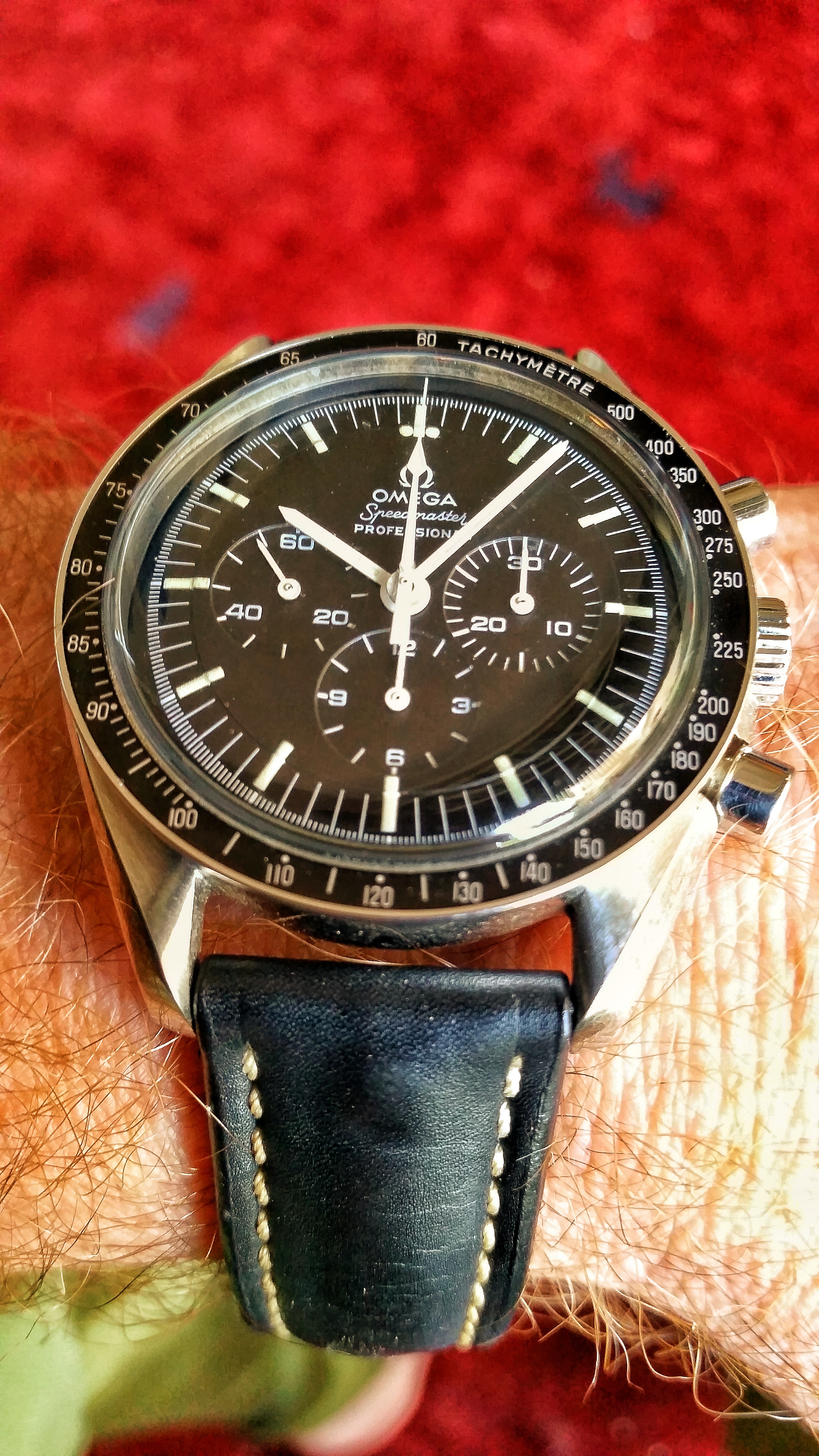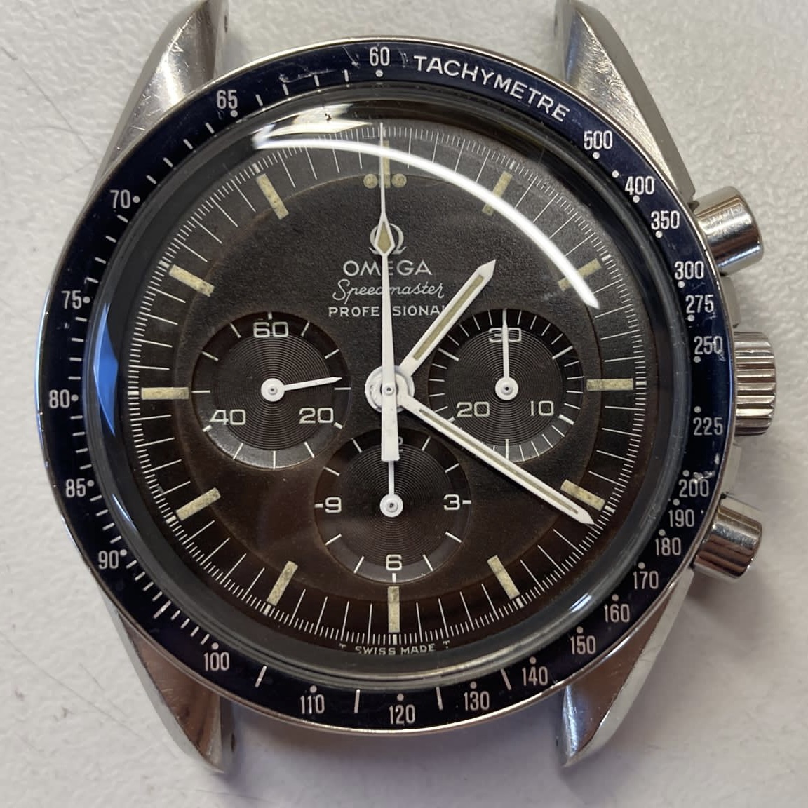Whilst on holiday last April, I spotted this Speedmaster 145.022-69 online with a South African watch dealer. Whilst the case and pushers resembled molten Chocolate, the dial reminds one of the same sweet. So, after a few messages back and forth and a confirmed 2960XXXX serial, a project was added to the collection.