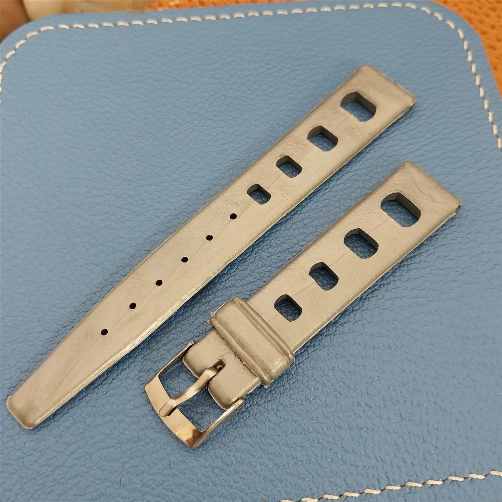 ยทNOS 1960s-1970s old-stock silver gray rubber diver watch strap.