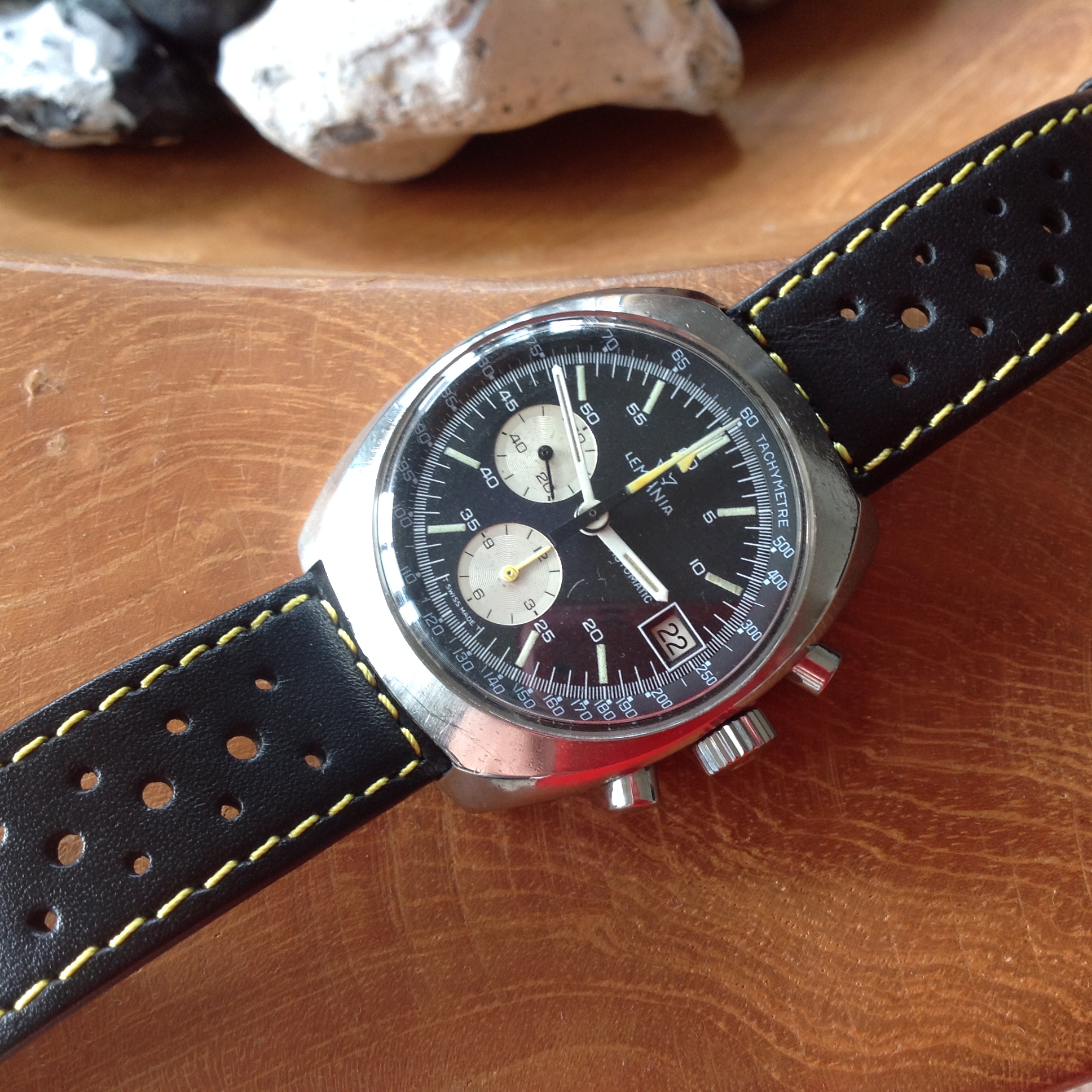 The 1045 is by the way a re-branded Lemania 5100 without any alterations. Due to the course of history, when SSIH had to sell of Lemania in order to stay afloat, the 5100 was also made available to other brands in the "full version" with the 24h indicator. True to tradition, Lemania had also here created a "lesser" version"; the 5012.