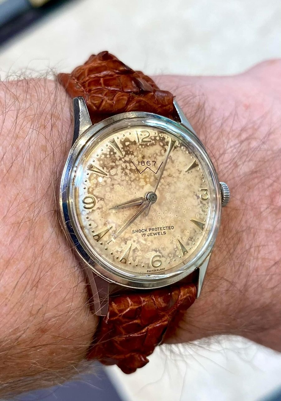 ยทI guess this will not appeal to most, but I absolutely love it. However, I cannot seem to find any information on it - it has a rather unusual '1867' sitting above quite a large 'W' on the dial, with Switzerland sitting below the 6. Within there is an Avalon 17 Jewel movement.