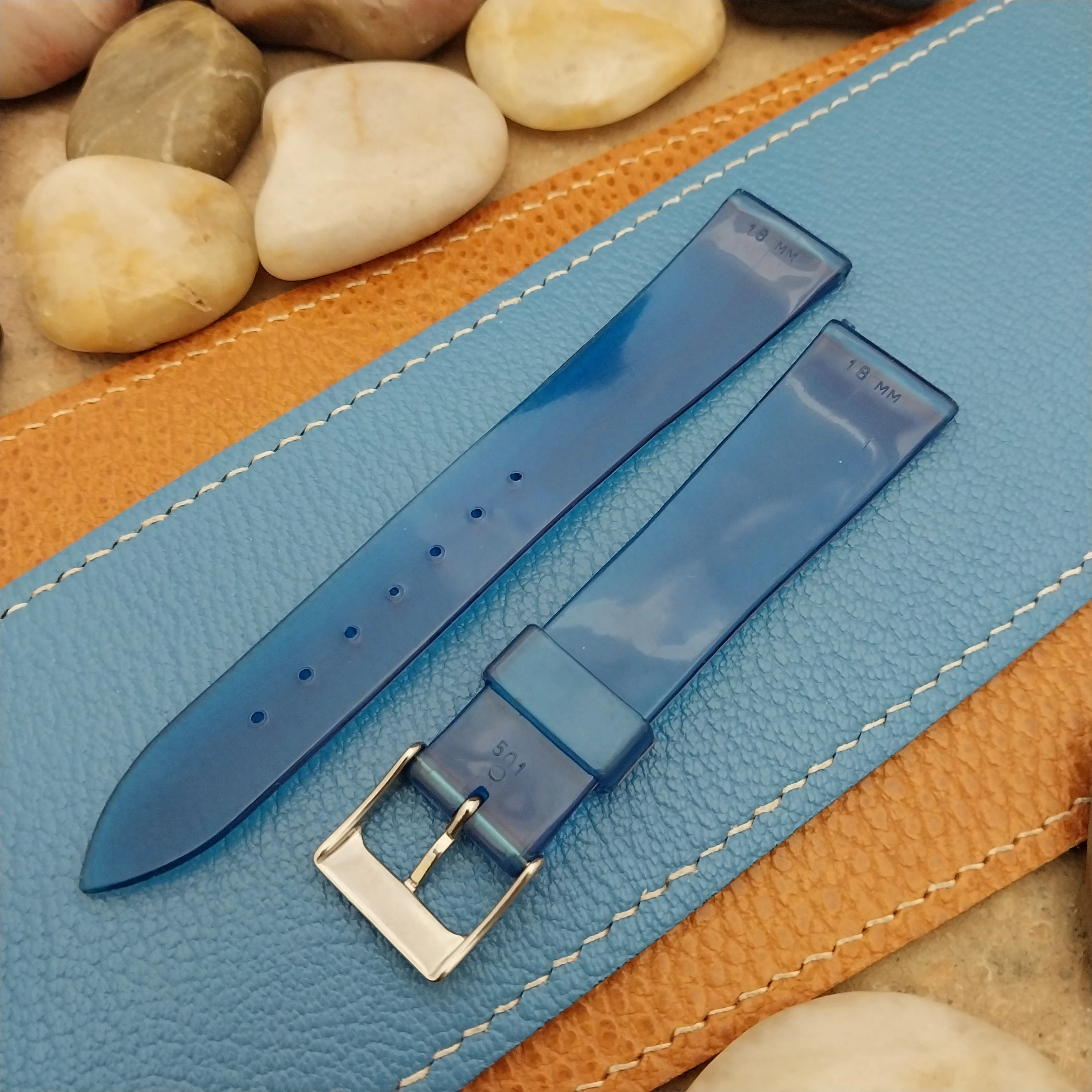 ยทNOS unused 1960s-1970s old-stock synthetic translucent blue watch strap.