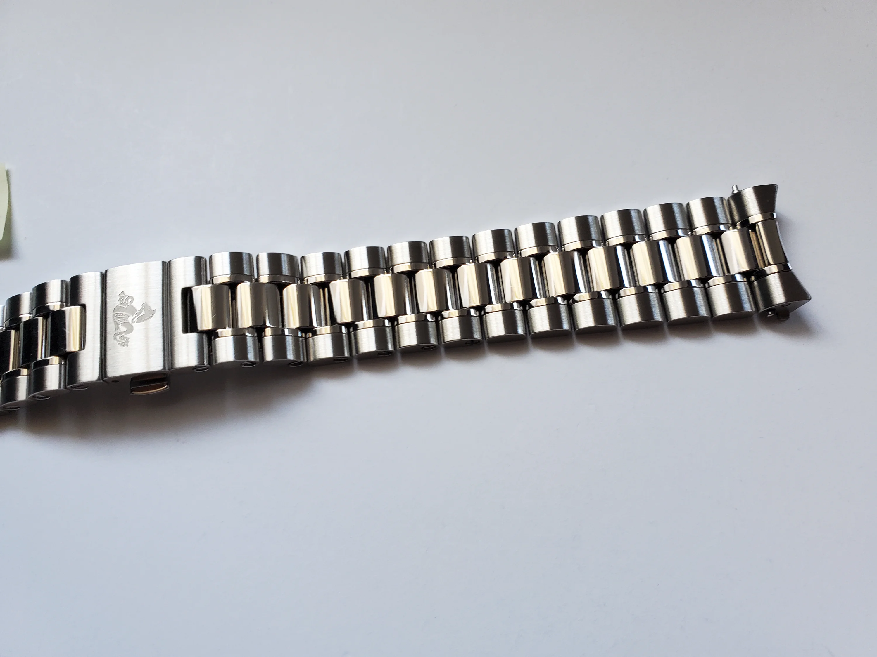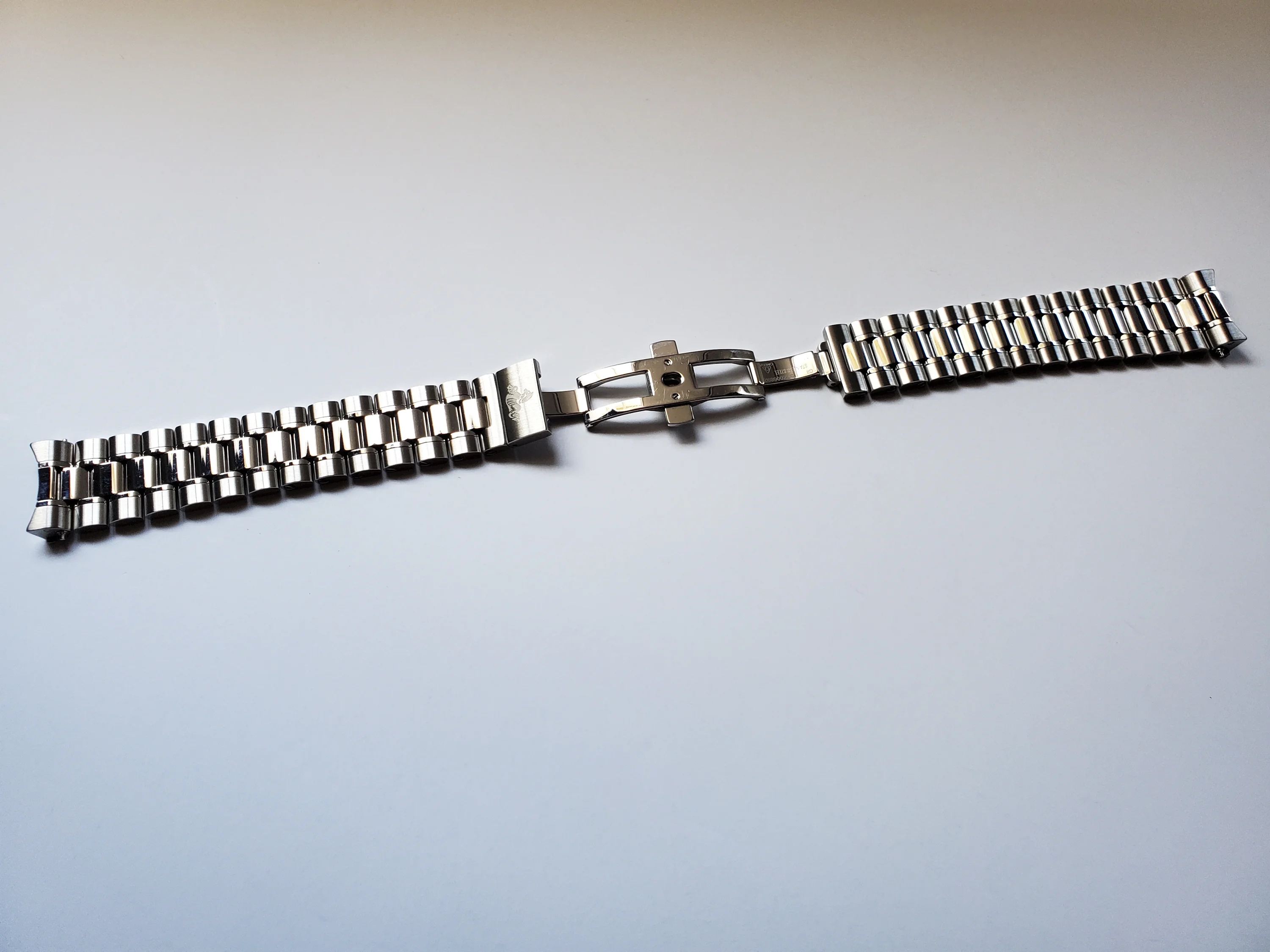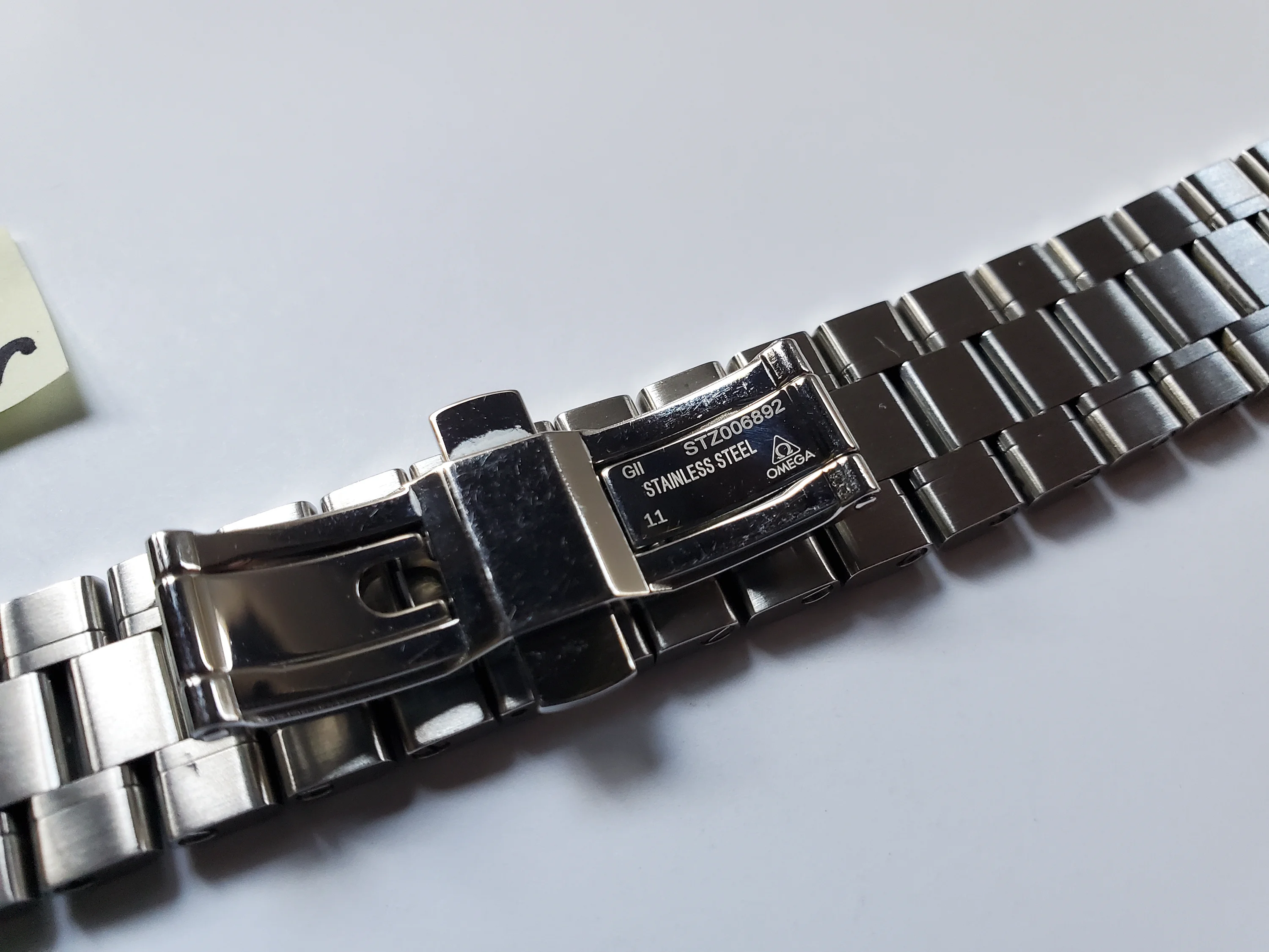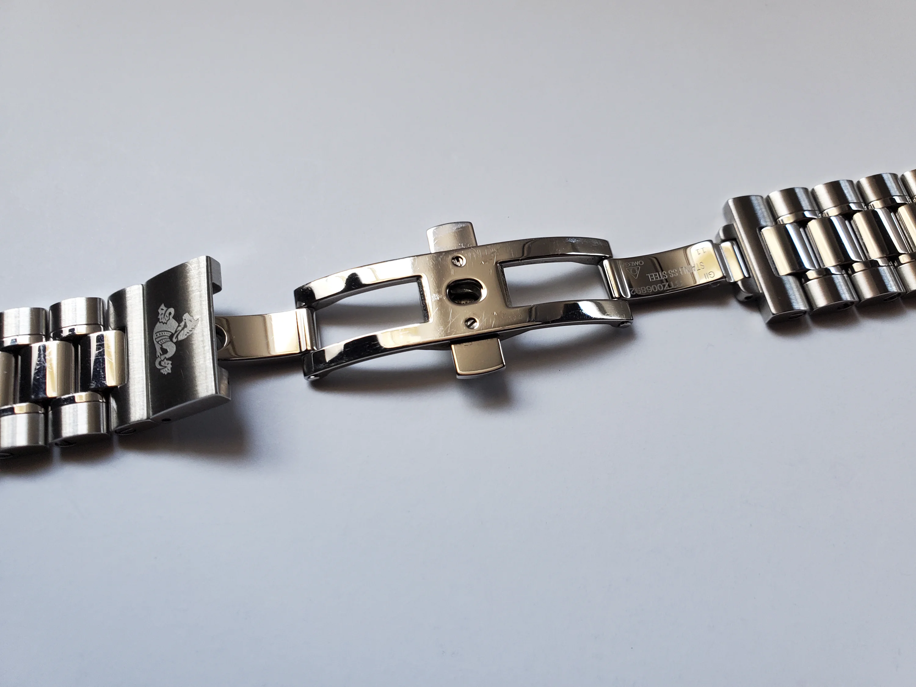 Up for sale is a pre-owned 18mm genuine Omega stainless steel bracelet in excellent condition with light scratches mostly on the polished bits. This bracelet fits the modern Speedmaster 38mm with the 3330 movement that has the oval subdials (eg., 324.30.38.50.01.001). It has brushed outer links and polished center links. Has the cute little Seahorse design on the butterfly clasp. Fully-linked with 12 total removable links and measures approximately 7 inches long. Includes a pair of genuine Omega 18mm spring bars. Please ensure compatibility with your watch before purchase.
