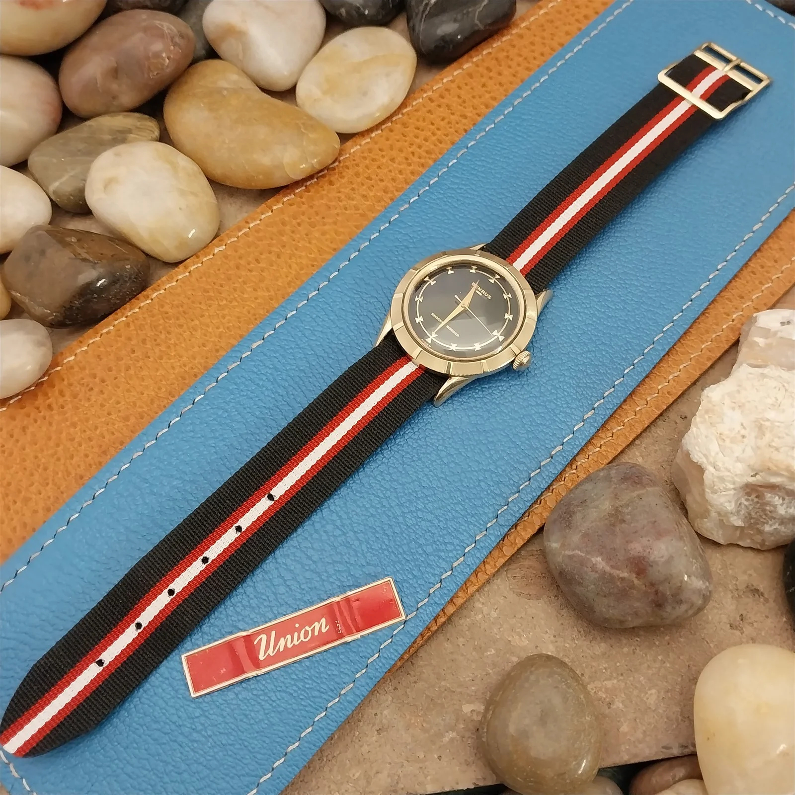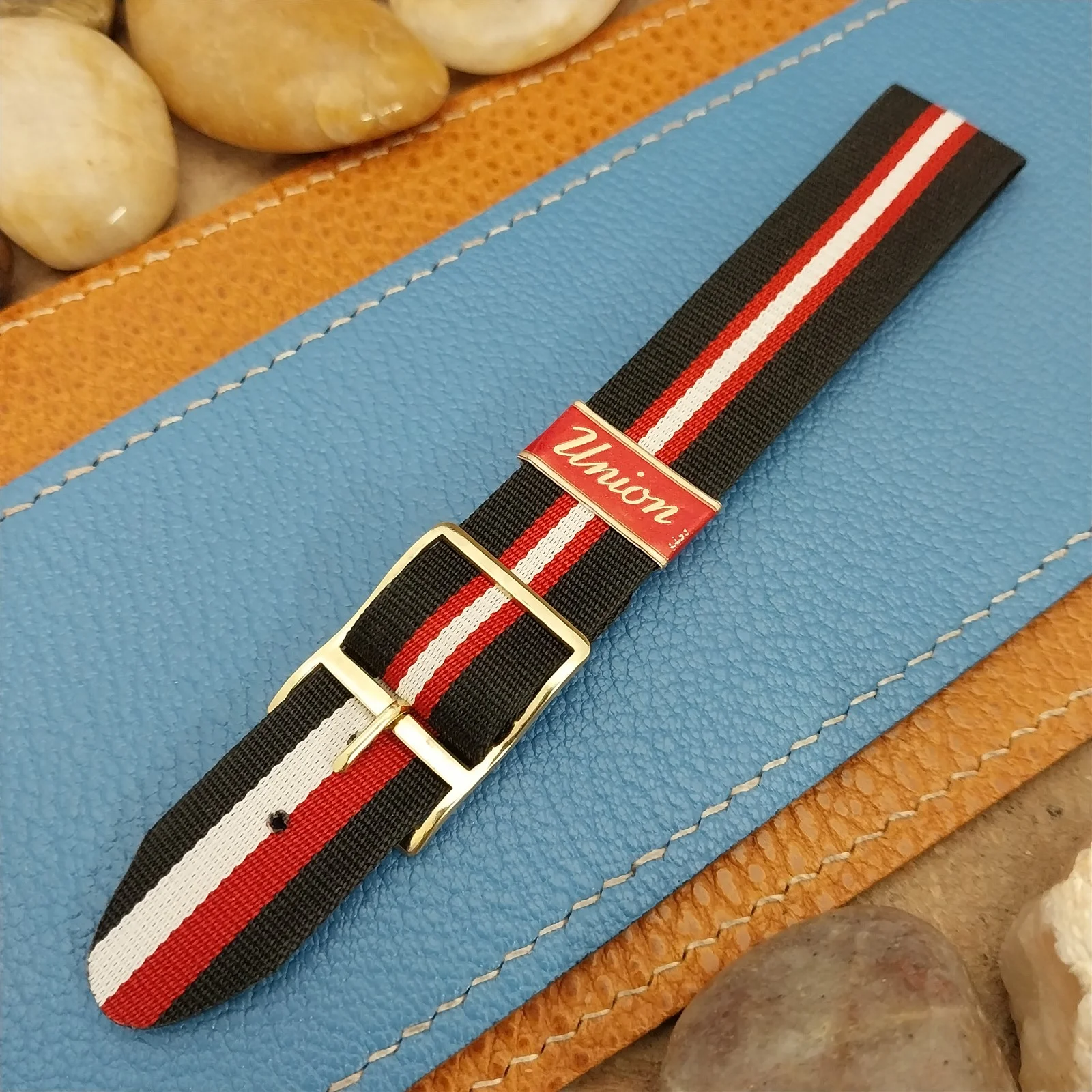 ยทNOS 1960s-1970s German reversible black white & red 1-piece Perlon field watch strap.