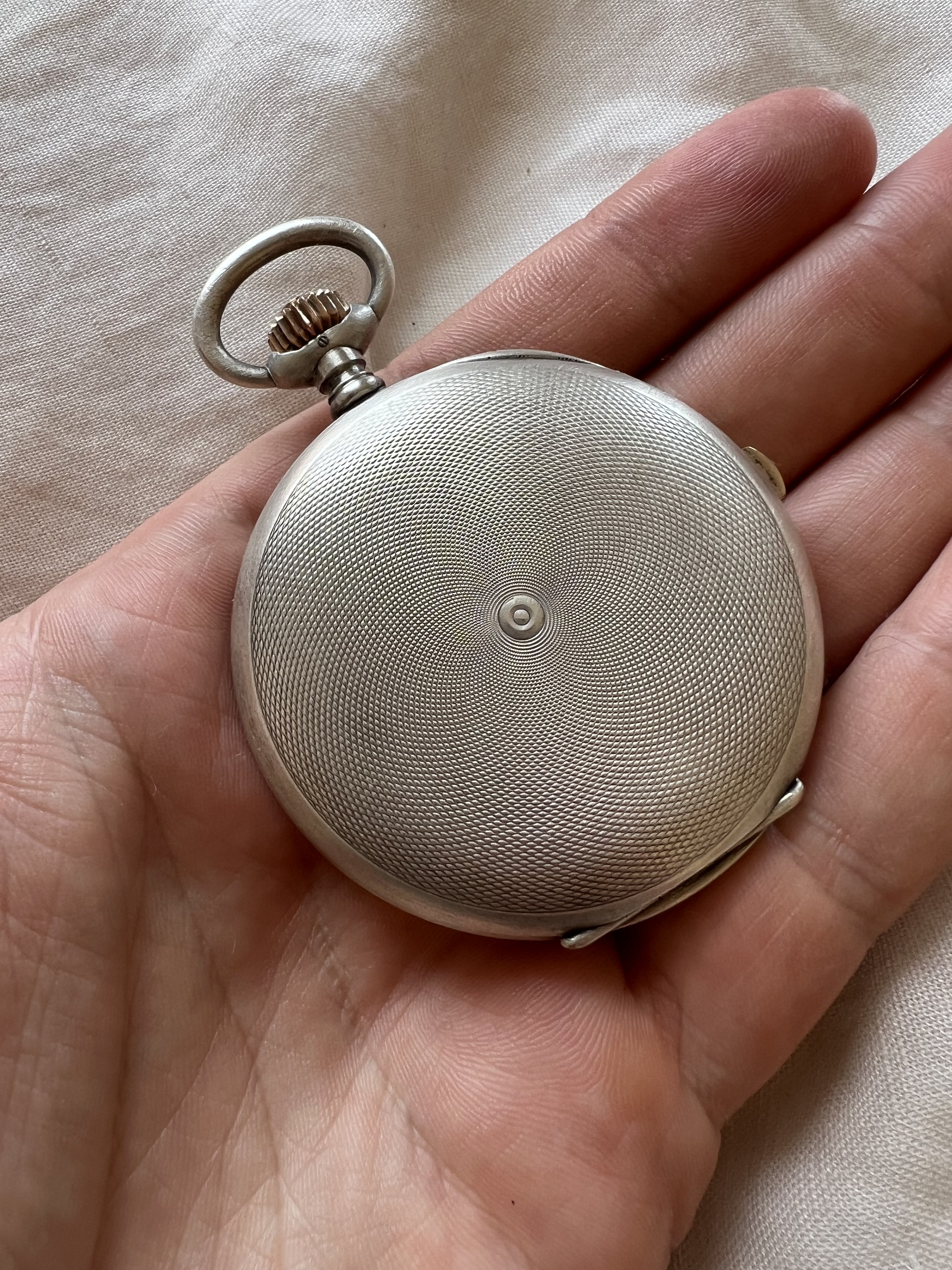 The dial is perfect and the watch appears (at least to me) to be all-original, although a rough, almost “brushed” finish on the silver case makes me think someone used something overly abrasive to remove prior oxidation. Would other OF members consider a *VERY* light polish to reduce the appearance of the scratching, or leave as is?