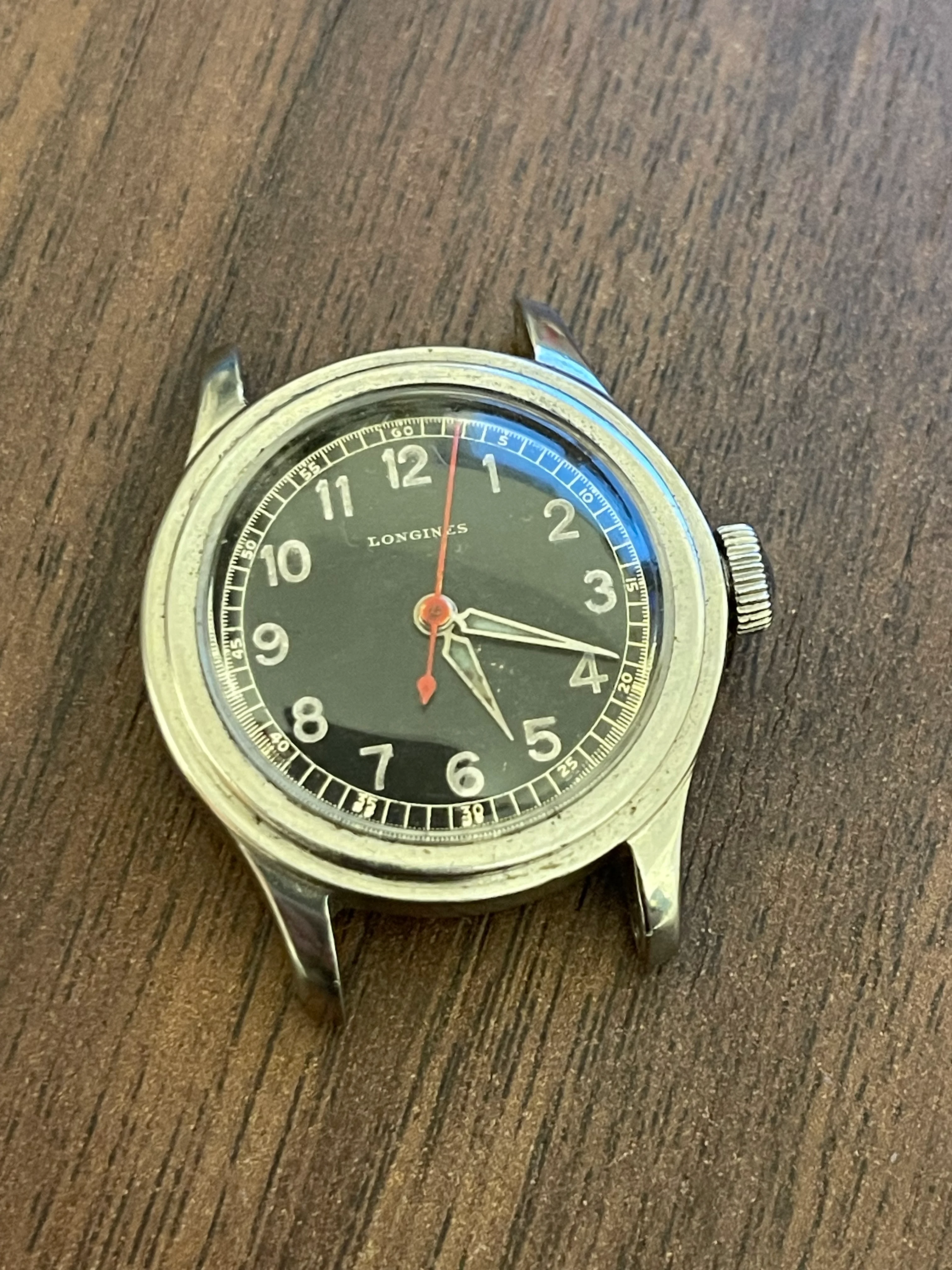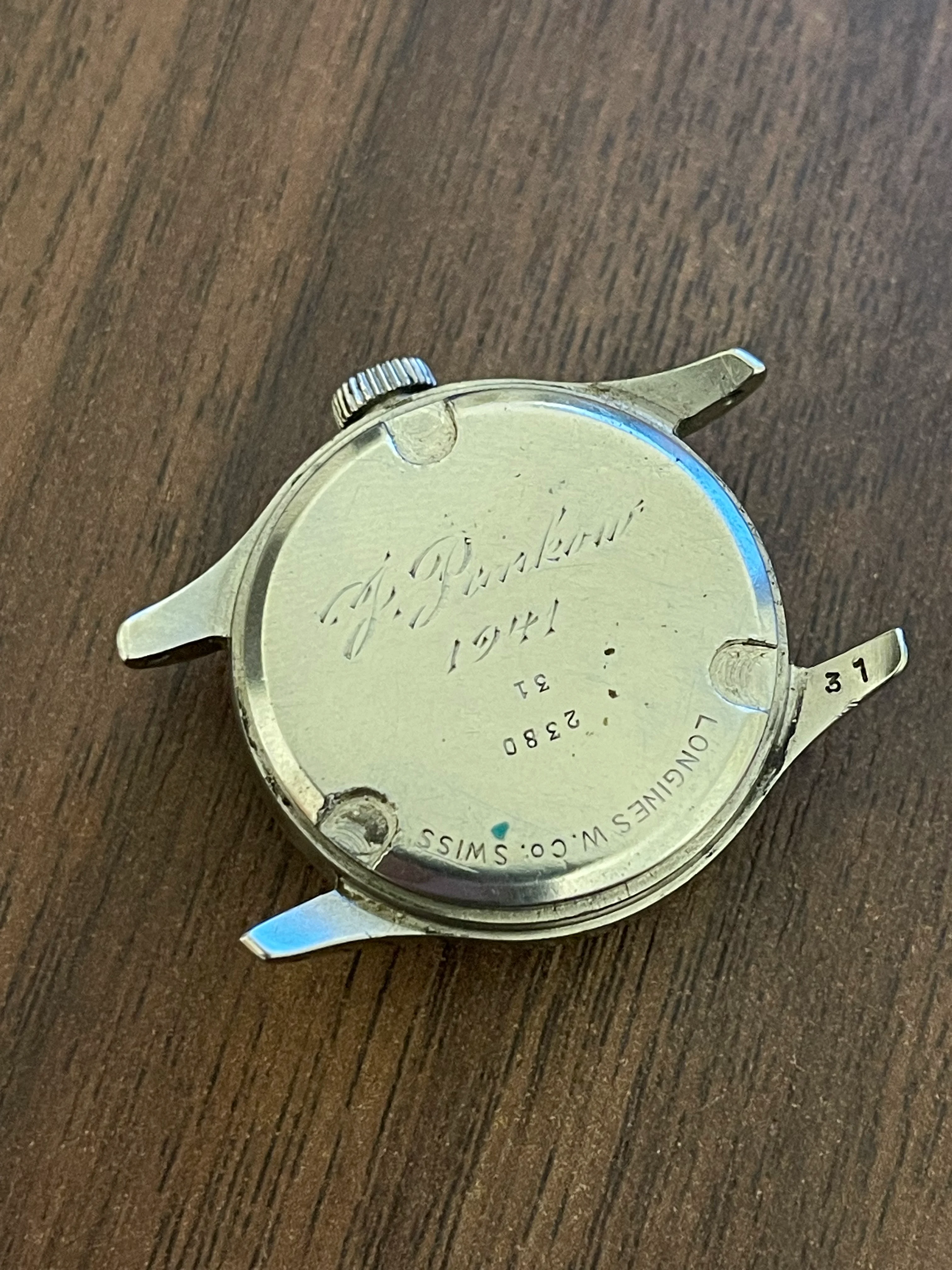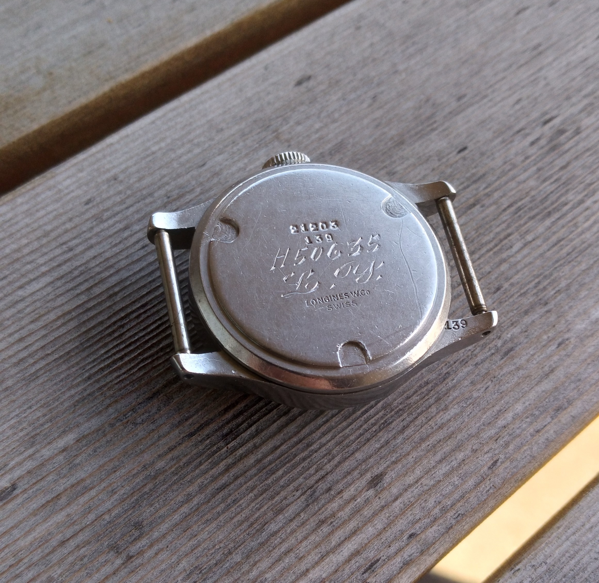 ·I recently acquired a Longines ref. 4776 with an intriguing engraving on its case-back. The engraving consists of a capital letter preceding a five-digit number, and what appear to be initials below the number. Knowing that the watch was invoiced to Canada in 1941, a bit of research suggested that the capital letter and number are a Canadian Regimental number, which were introduced for the Canadian Active Service Force in 1940 (Source: Law).