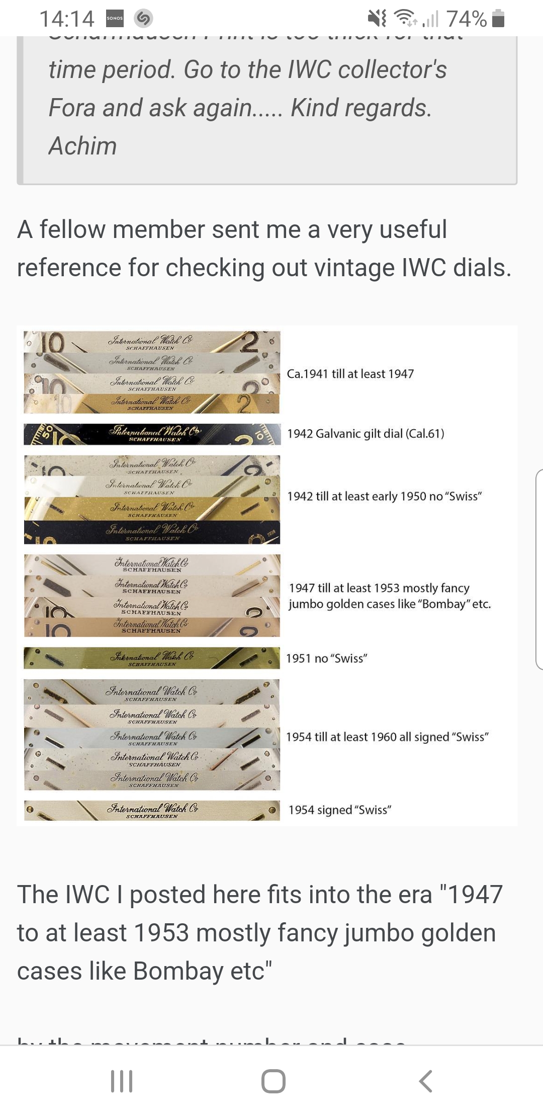 ·Recently acquired an IWC cal 89, a watch that I've been eyeing for a while. With so much dial these watches wear large for a vintage piece and they are so understated! I believe this is a 1950s iteration and as I'm fairly new to the watch game, wanted to inquire the expertise of those who are familiar with these watches.