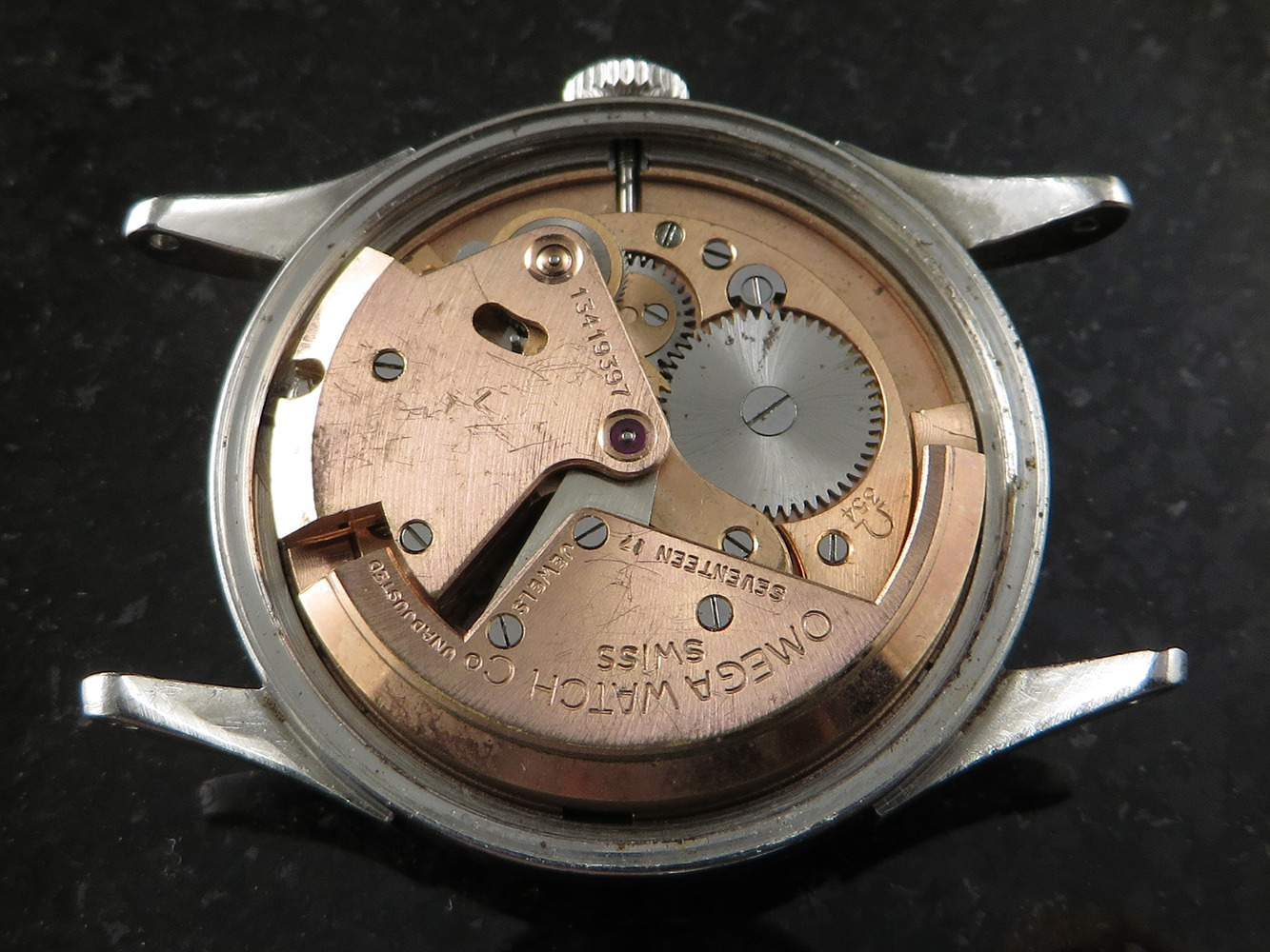 Caliber 354 automatic, serial number dates this to ca 1951. Not serviced while in my possession, running but has been sitting for an unknown period of time, service is suggested.