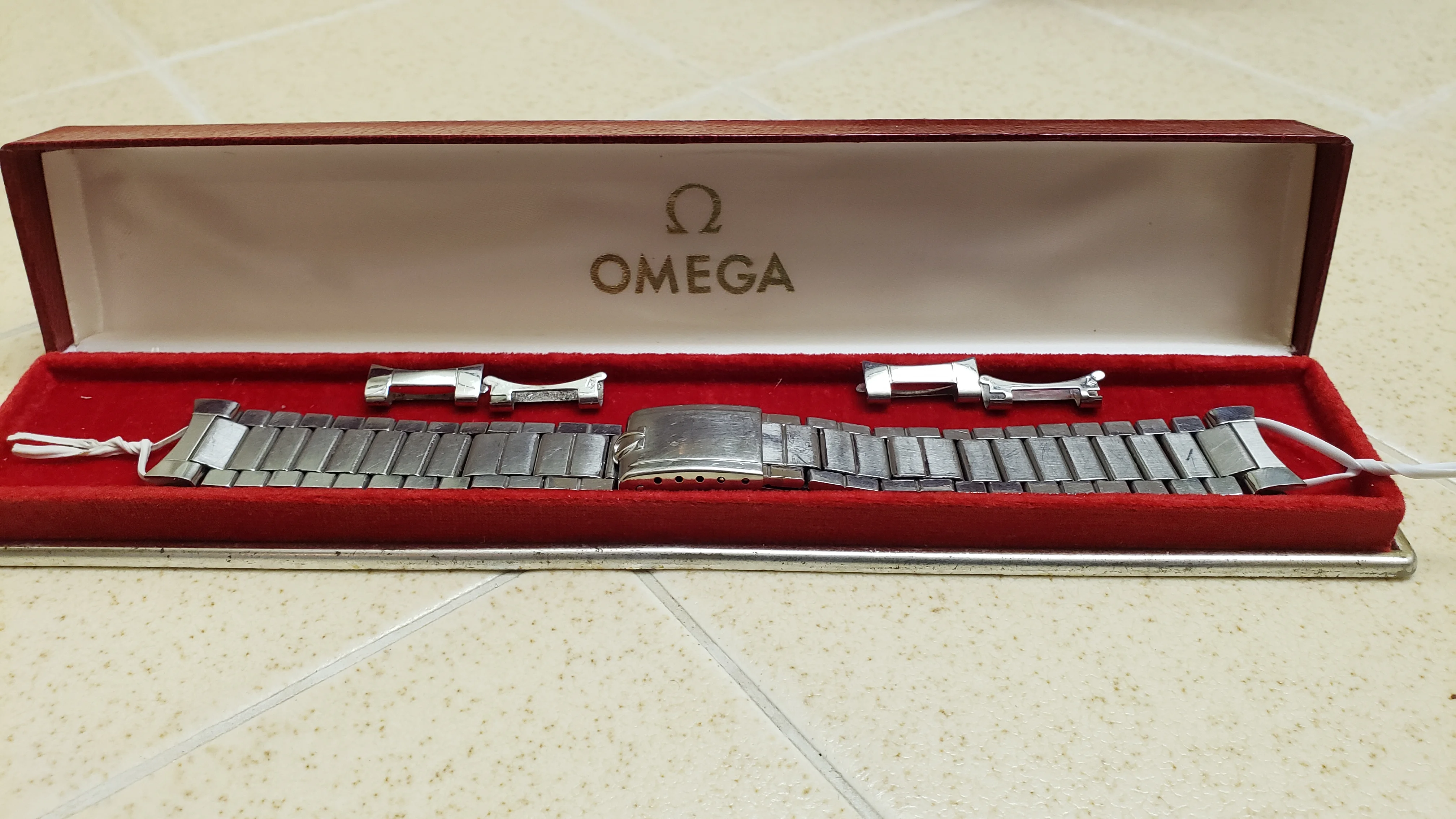 $1500 (net to me) includes the full length 7077 bracelet a pair of aftermarket #4 end links and shipping within the USA. International shipping can be arranged. Offered in the featured vintage red velvet-lined Omega box PayPal except, but add 3% to cover service fee.