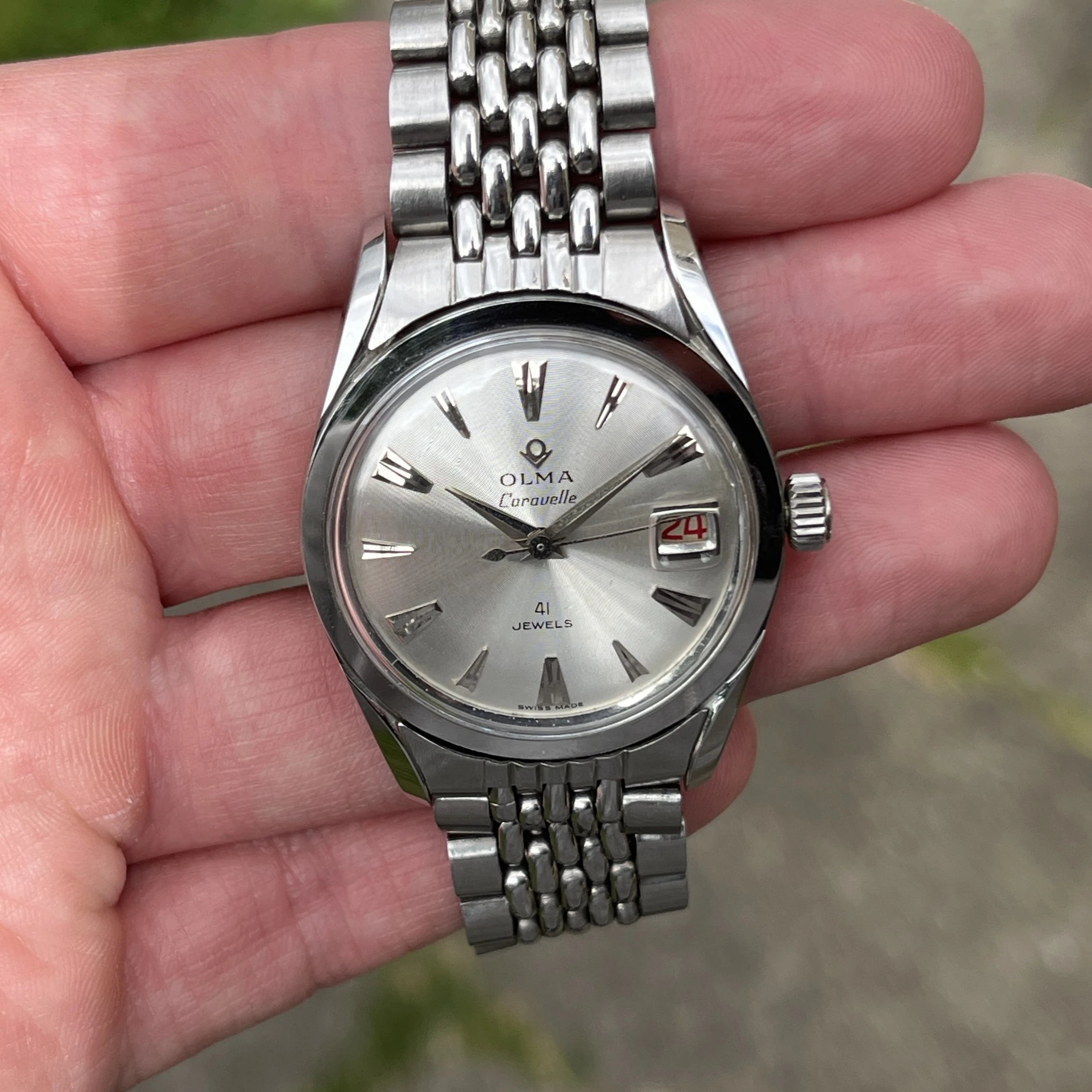 I will be listing a few watches the coming period in a spring cleanout. First to go is this stunning Olma Caravelle. I will post pictures below but I also encourage you to watch the video for an accurate representation.