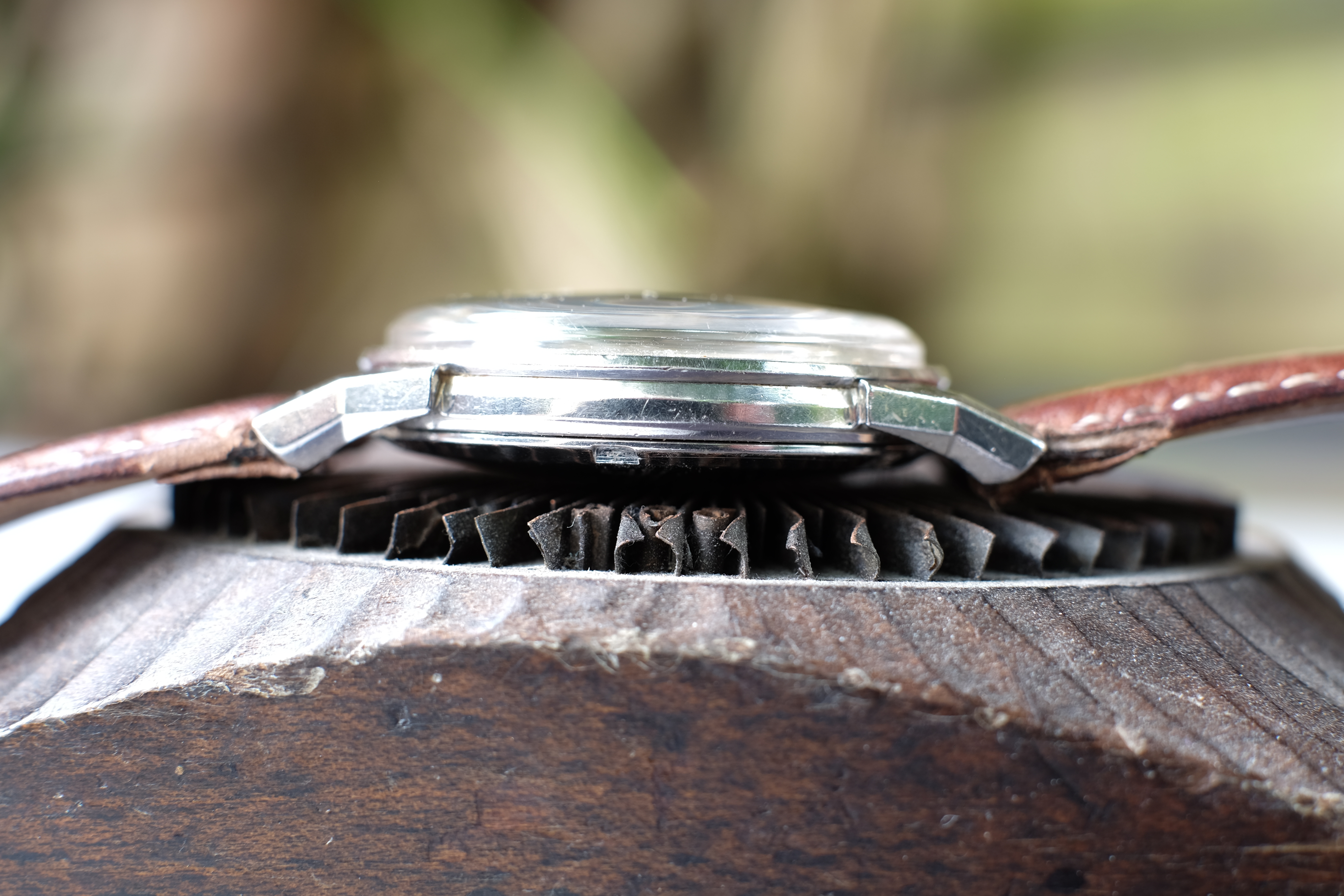 It has a sharp, SS case which appears to have never been polished and also has the signed crown. Although generally not a fan of caseback engraving, I do like this particular, evocative message which often leaves me pondering on the watch’s past. Dial is also in really nice condition and the indices are onyx inlay.