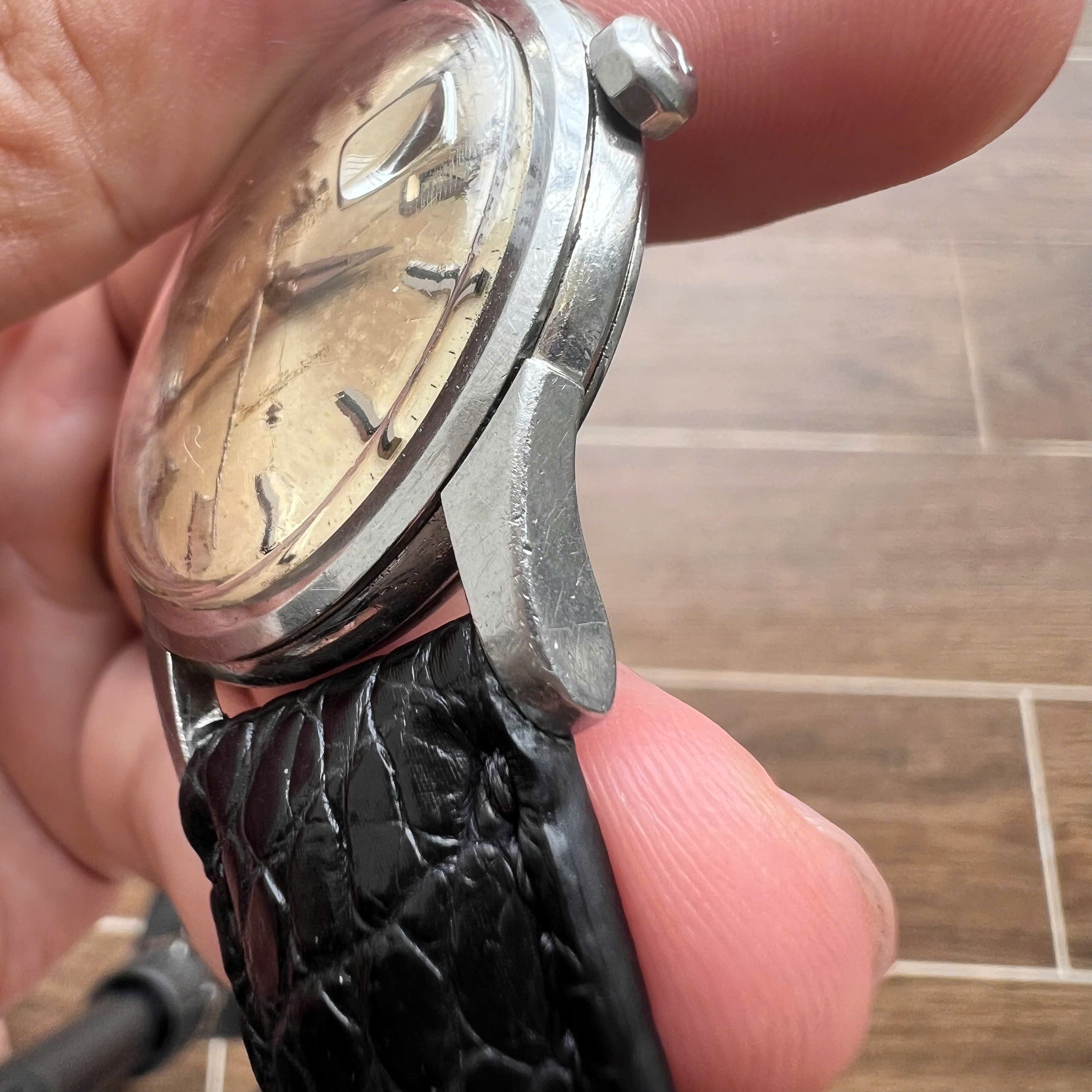 - Dial: Original dial in average condition (literally average, probably 5/10) with clear signs of aging as shown in the pictures. Texts and minute markers are still visible. Correct set of hands and onyx inserted hour markers.