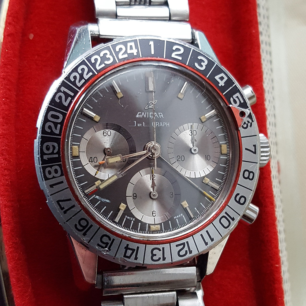 as much as I like Enicar chronographs, I lile military watches. What is better to have a military used Enicar 😁. Since the British and American used three hand Enicar watches from WWII are known, the usage of the Jet Graph was new to me. (disclaimer: I really mean used,...not issued).