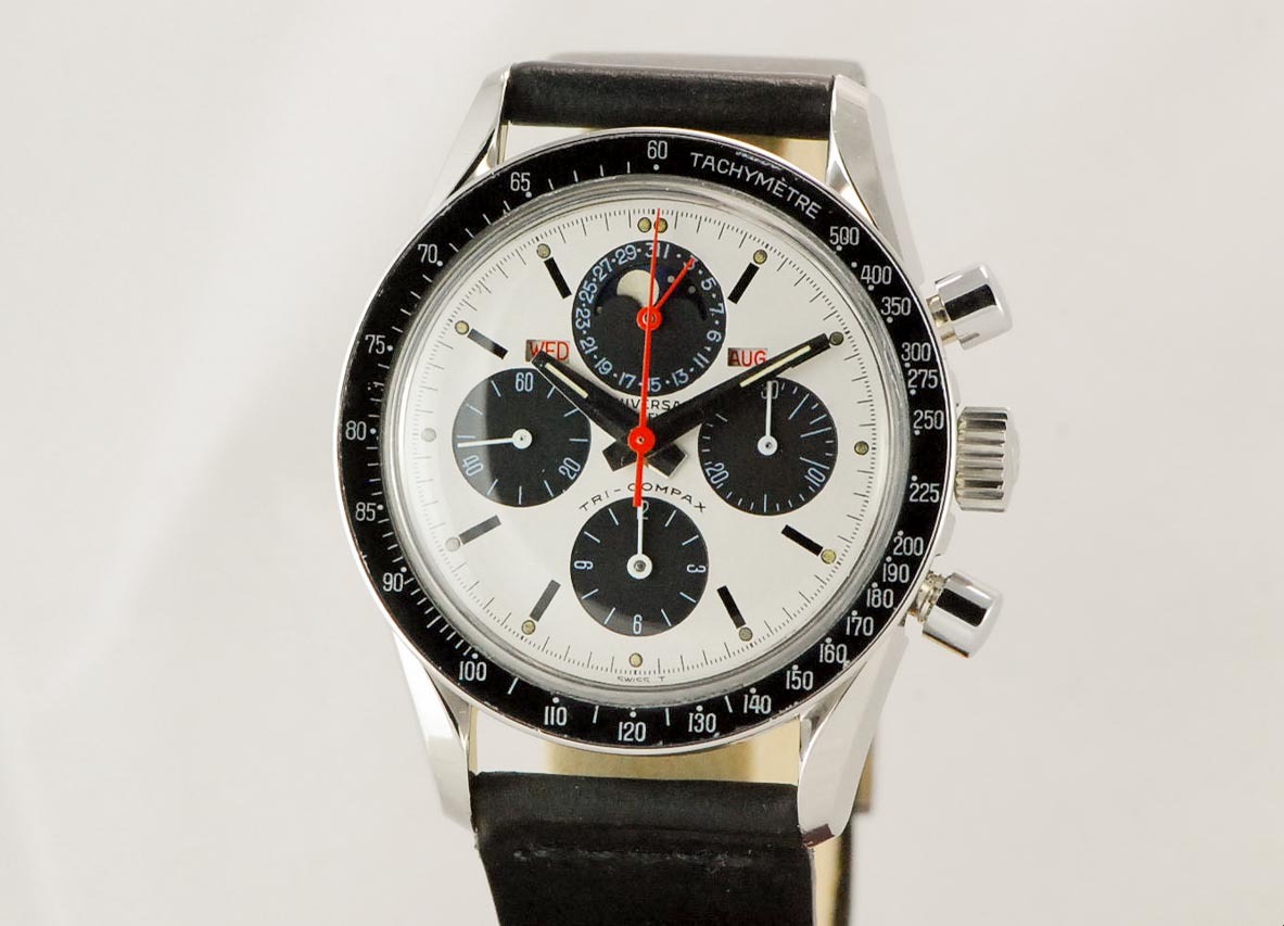 Strap: Pictured on a Horween Shell leather strap, which perfectly compliments the beautiful panda dial. Add a signed, period Universal buckle here.
