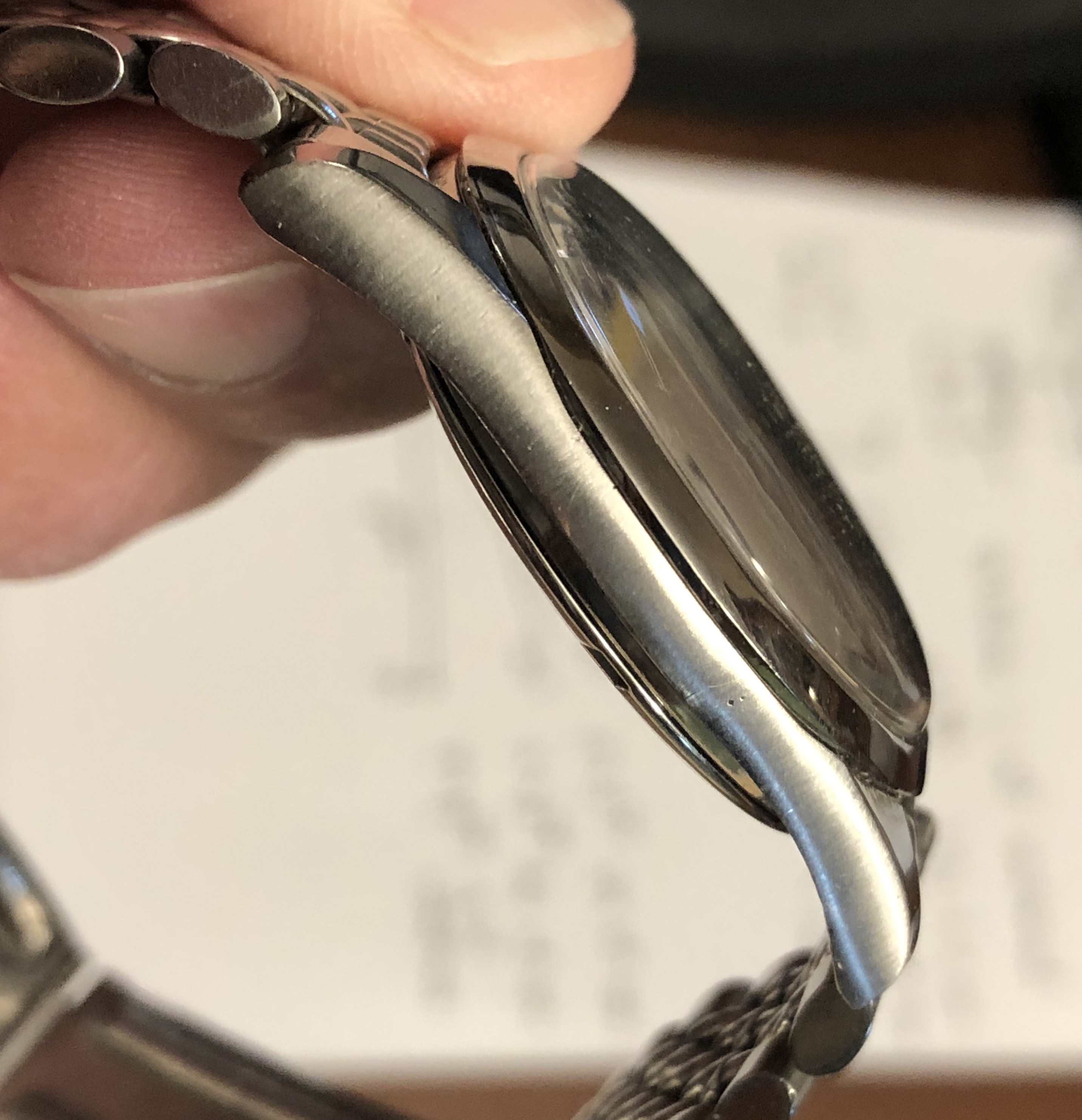 The 166.010 reflects the older small chunky curved lug style case, tapered polished bezel, sunburst dial, and BoR bracelet, while the 168.022 has a more modern larger case with sharply faceted lugs, a flat bezel with radial brushing, a distinctive sparkle dial and a sporty 1125 bracelet.