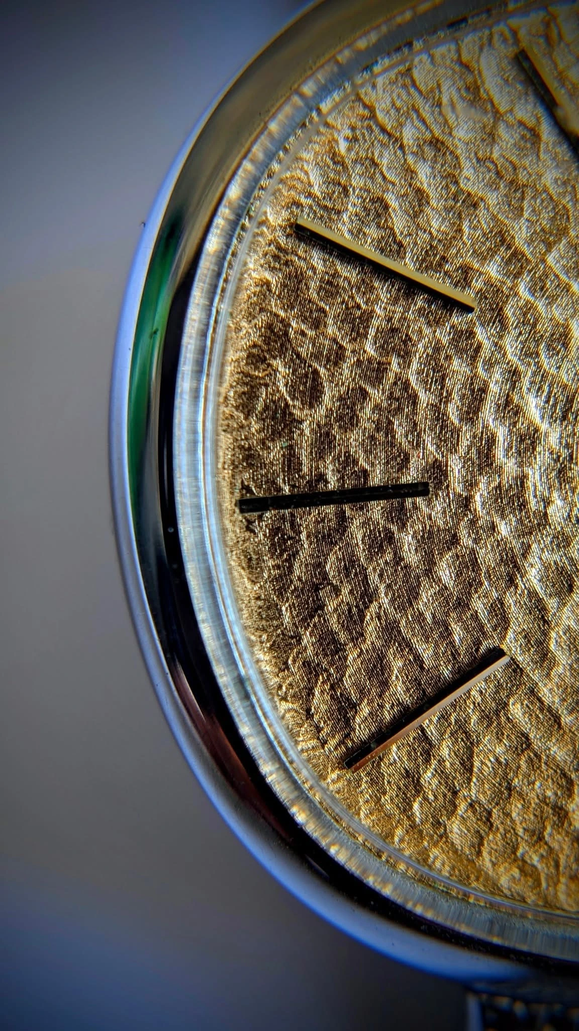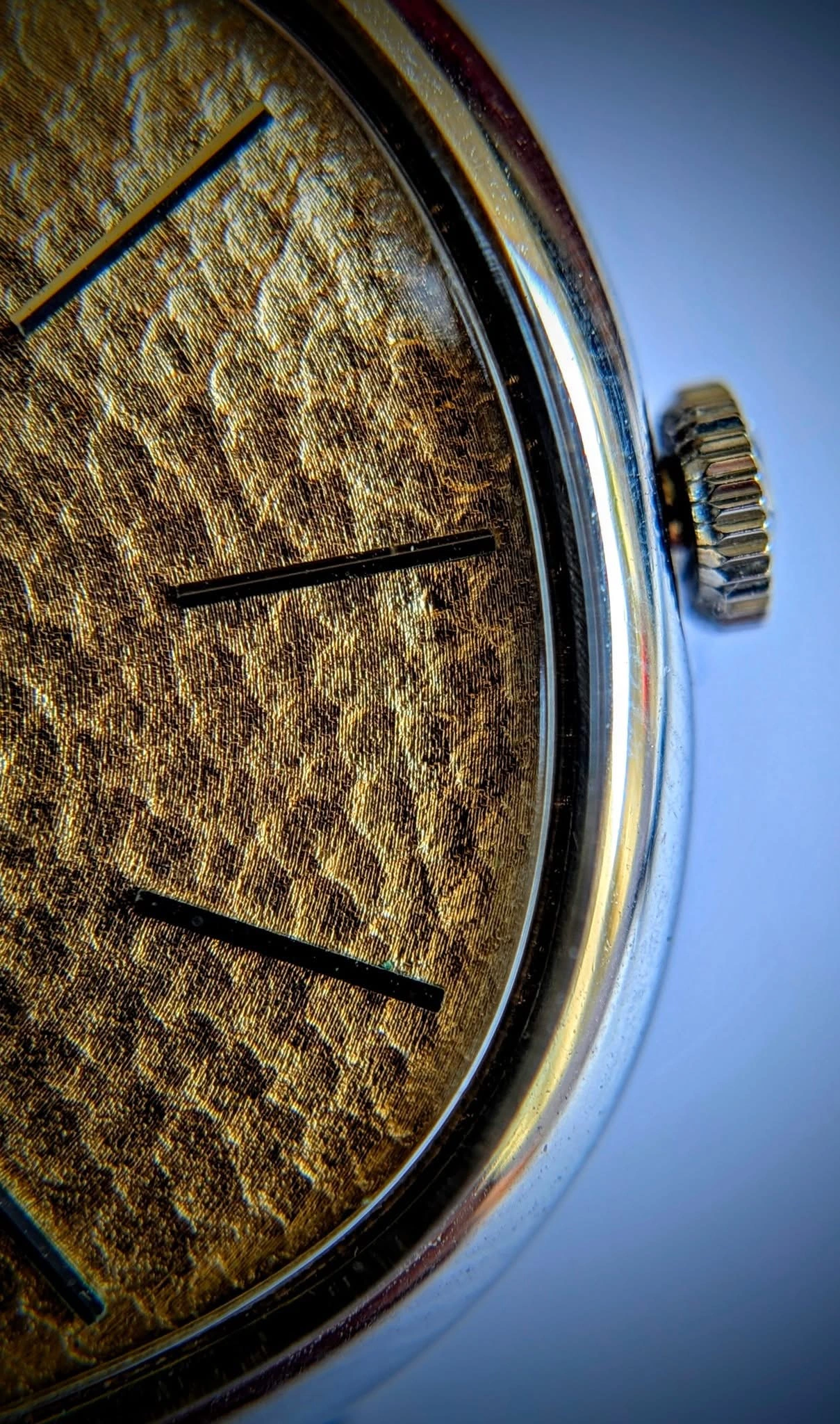 I have seen one or two others very much like it in Japanese auctions - one with a silver dial, the other had a blue dial. Both came with this hammered finish.