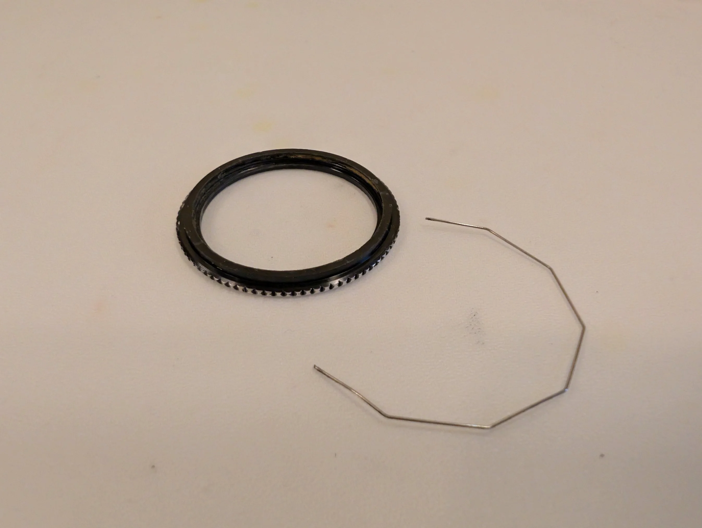 Rim around the bezel channel on the case to capture the spring clip (once installed)