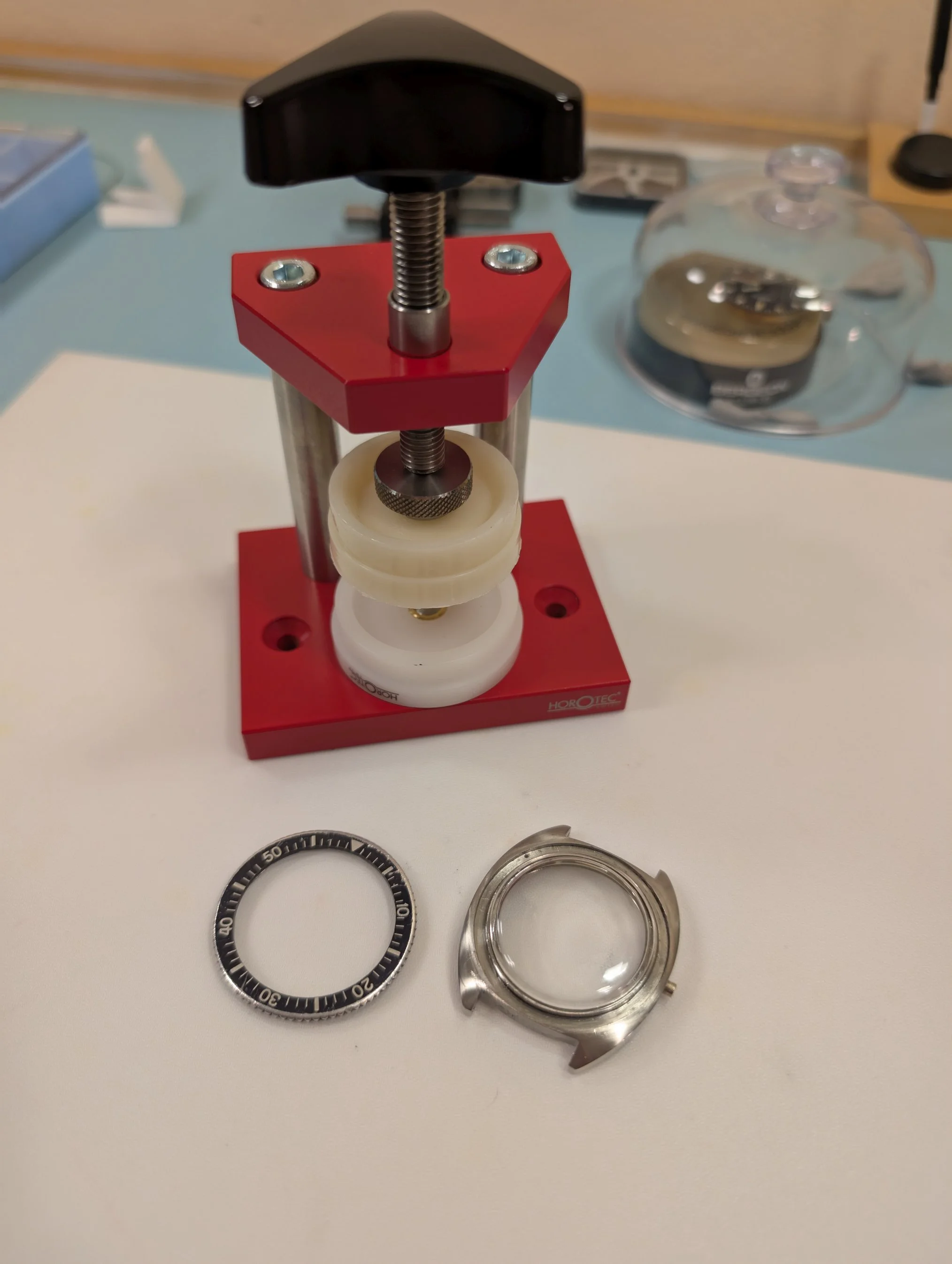 But, no reasonable (or even unreasonable) amount of force from the press can get the bezel & case to mate up.