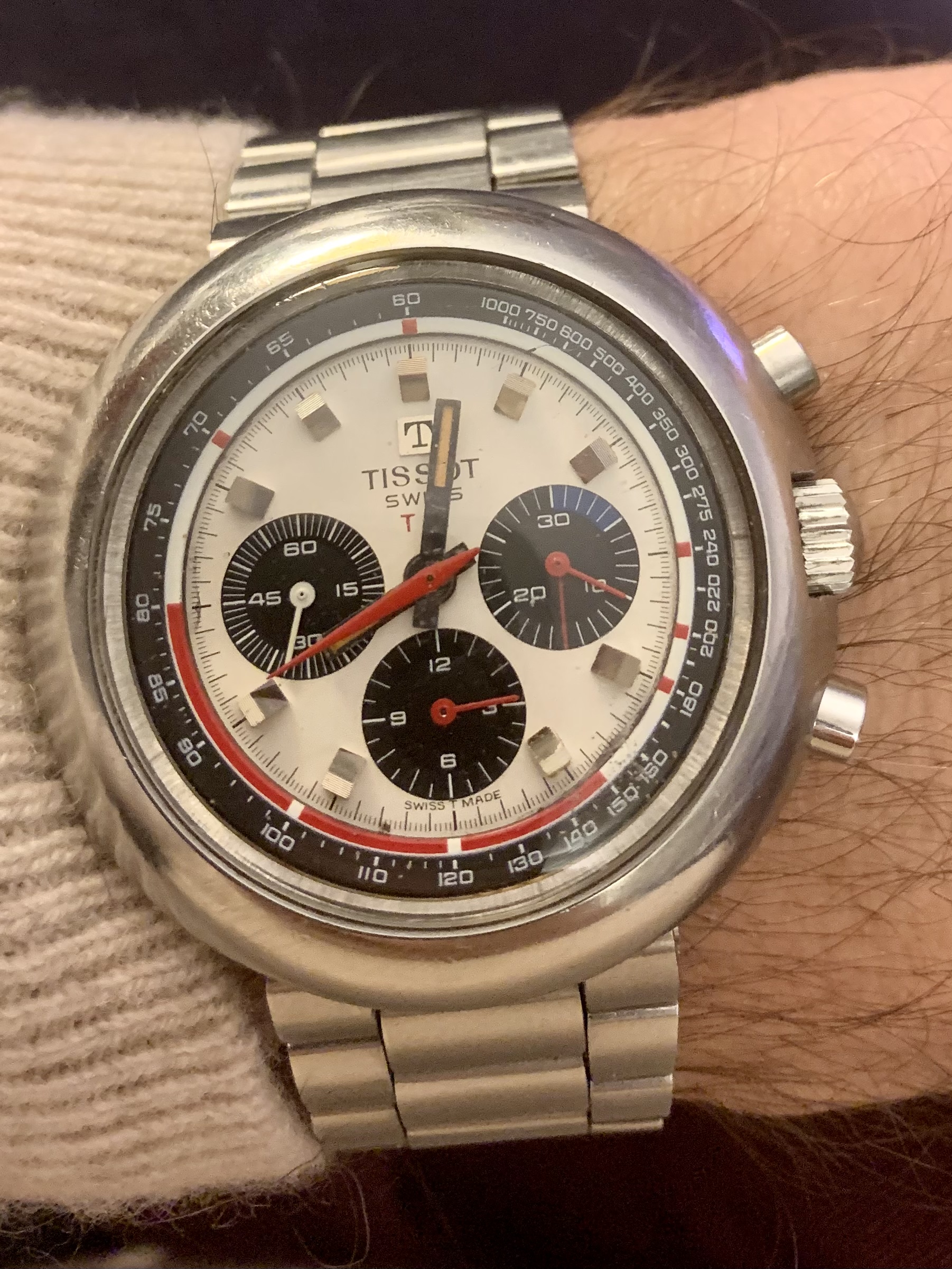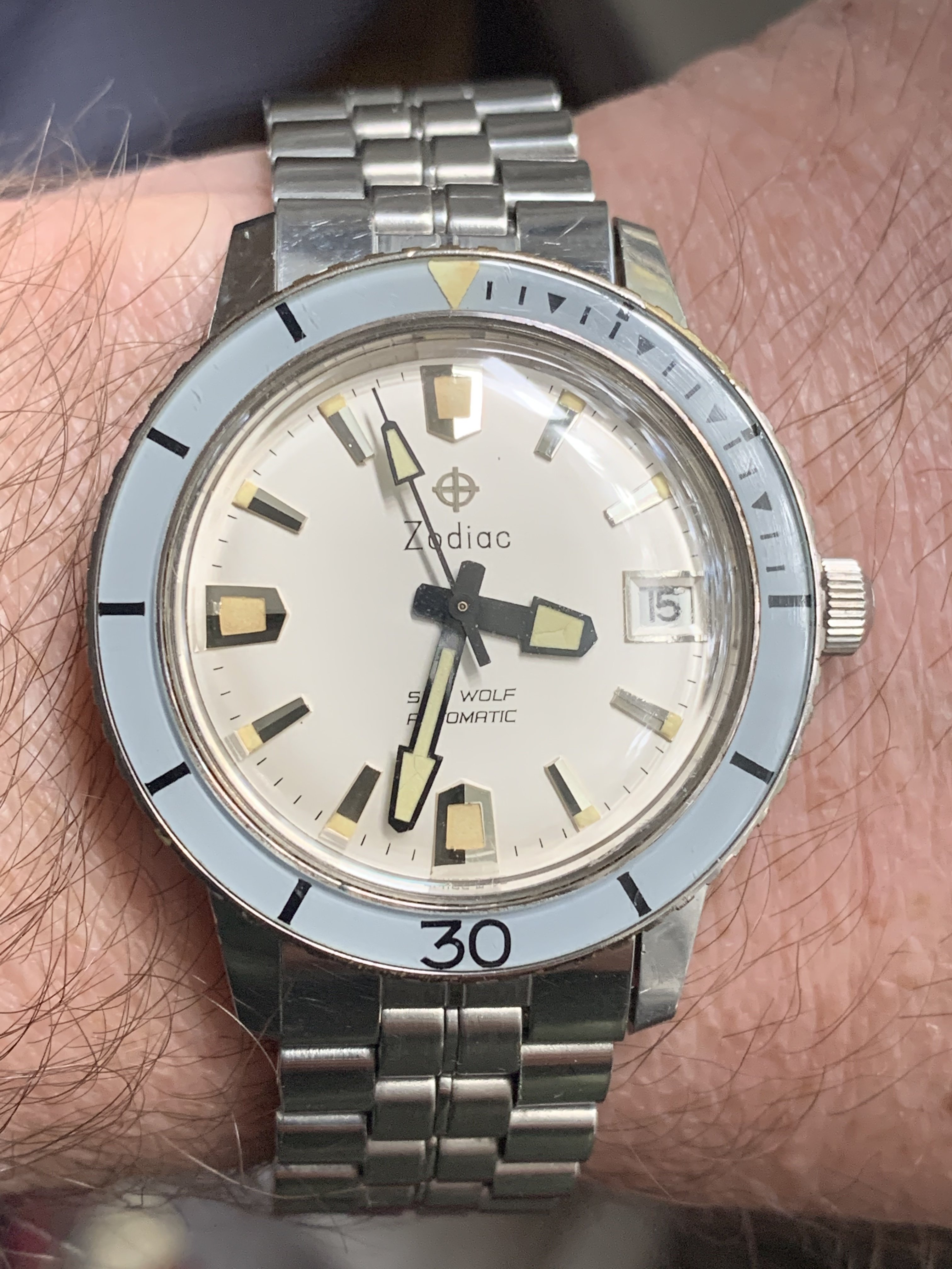 I’m going to be the enabler here (as always)- it’s in nice shape, has the GF bracelet (if the engraving on the clasp cover bothers you, that’s easy enough to either brush off or replace), the lume and dial is in better shape than 85% of what I’ve seen (colors aren’t faded, lume is bright yellow, and no moisture damage) and the case finishes seem to be good (if refinished, they did it well). With the service included, this seems like a fair price- not a steal or a bargain, but fair.