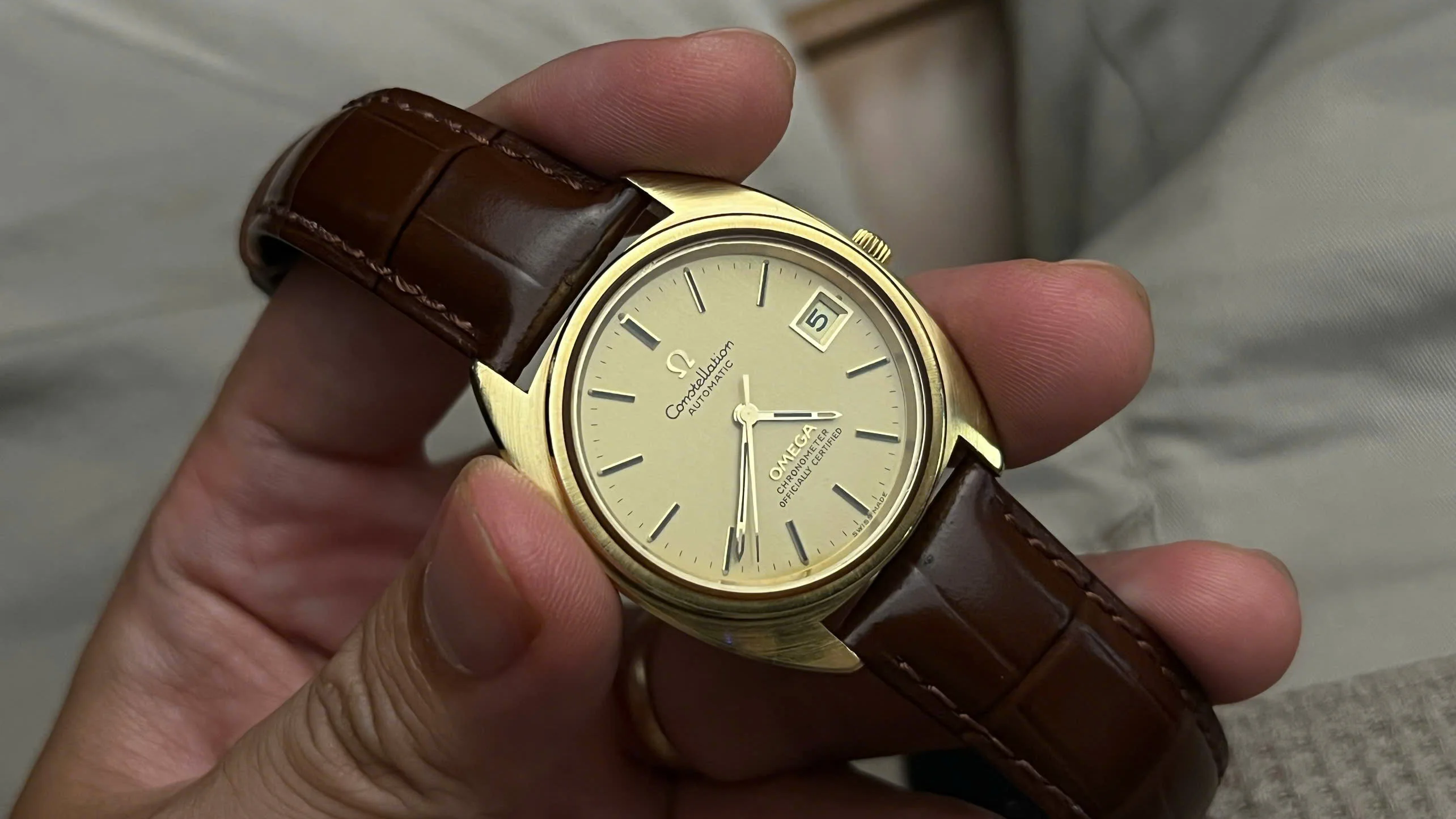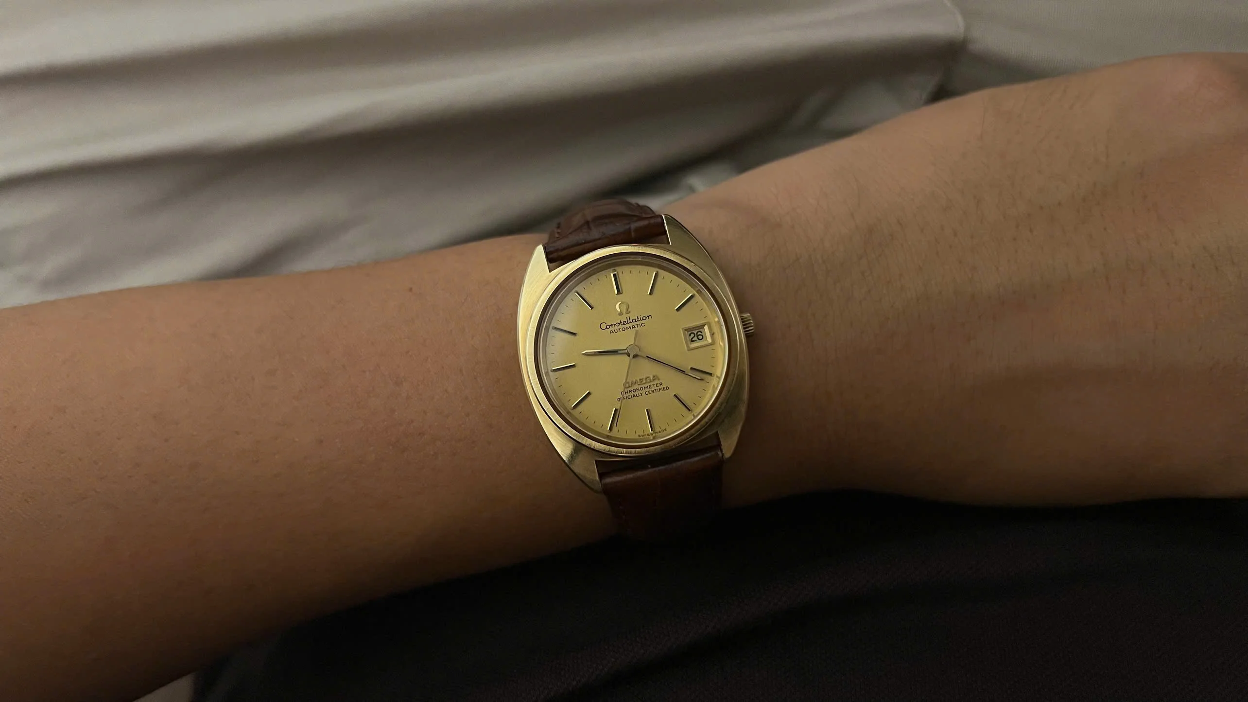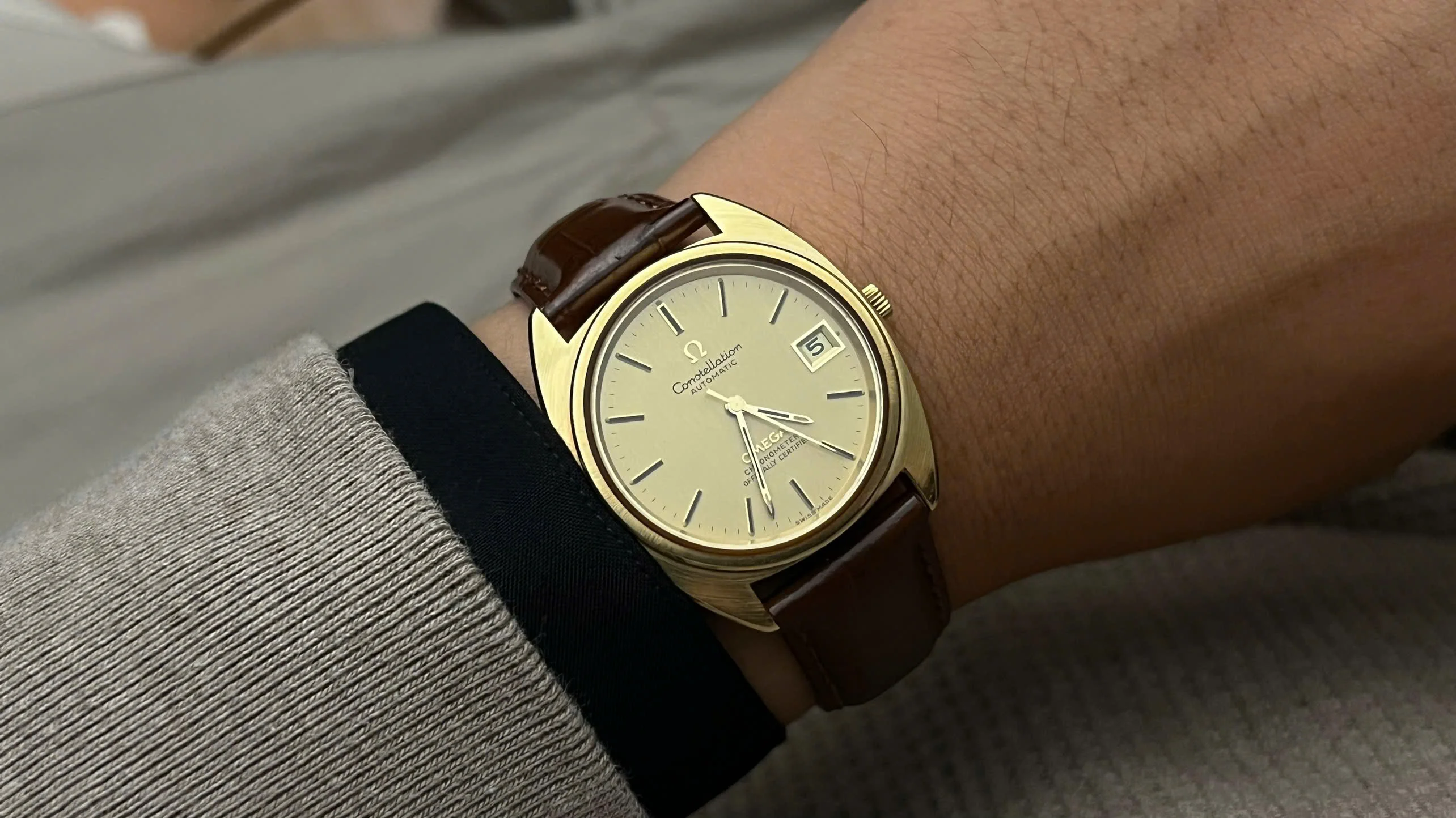 For sale is an honest and well-preserved 1973 Omega Constellation reference 168.0056. This is one of the later C-Case Constellations, featuring a gold-capped case with a solid gold bezel and observatory medallion on the back. These design details give the watch both a subtle dress presence and the everyday practicality that the Constellation line was known for.