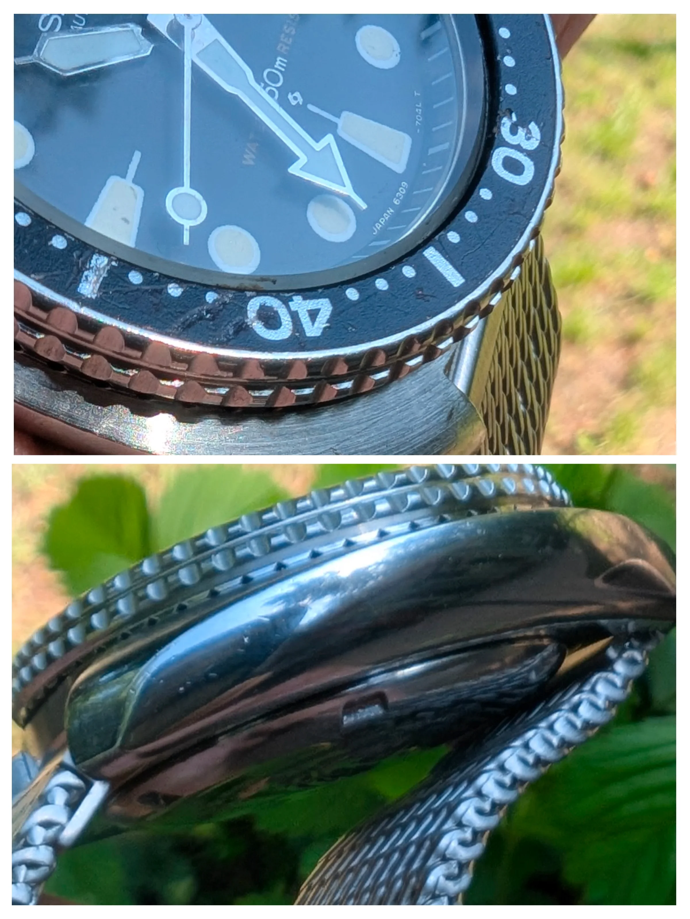 Tough to tell from the photos but a 6306/6309 from the factory had a brushed finish on the top bevel/surface and a polished finish everywhere else. There should be a crisp edge where the brushed surface transitions to the polished.