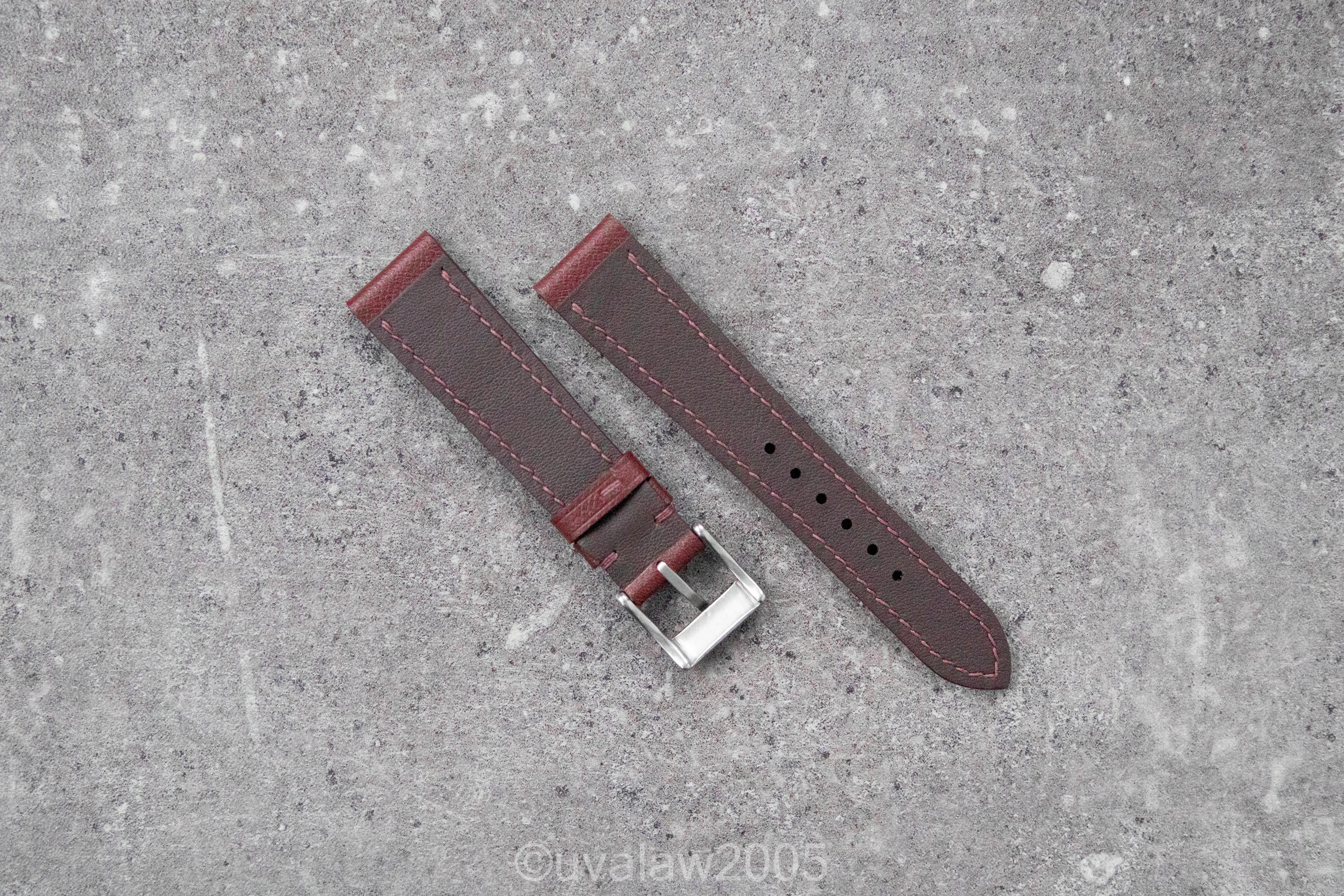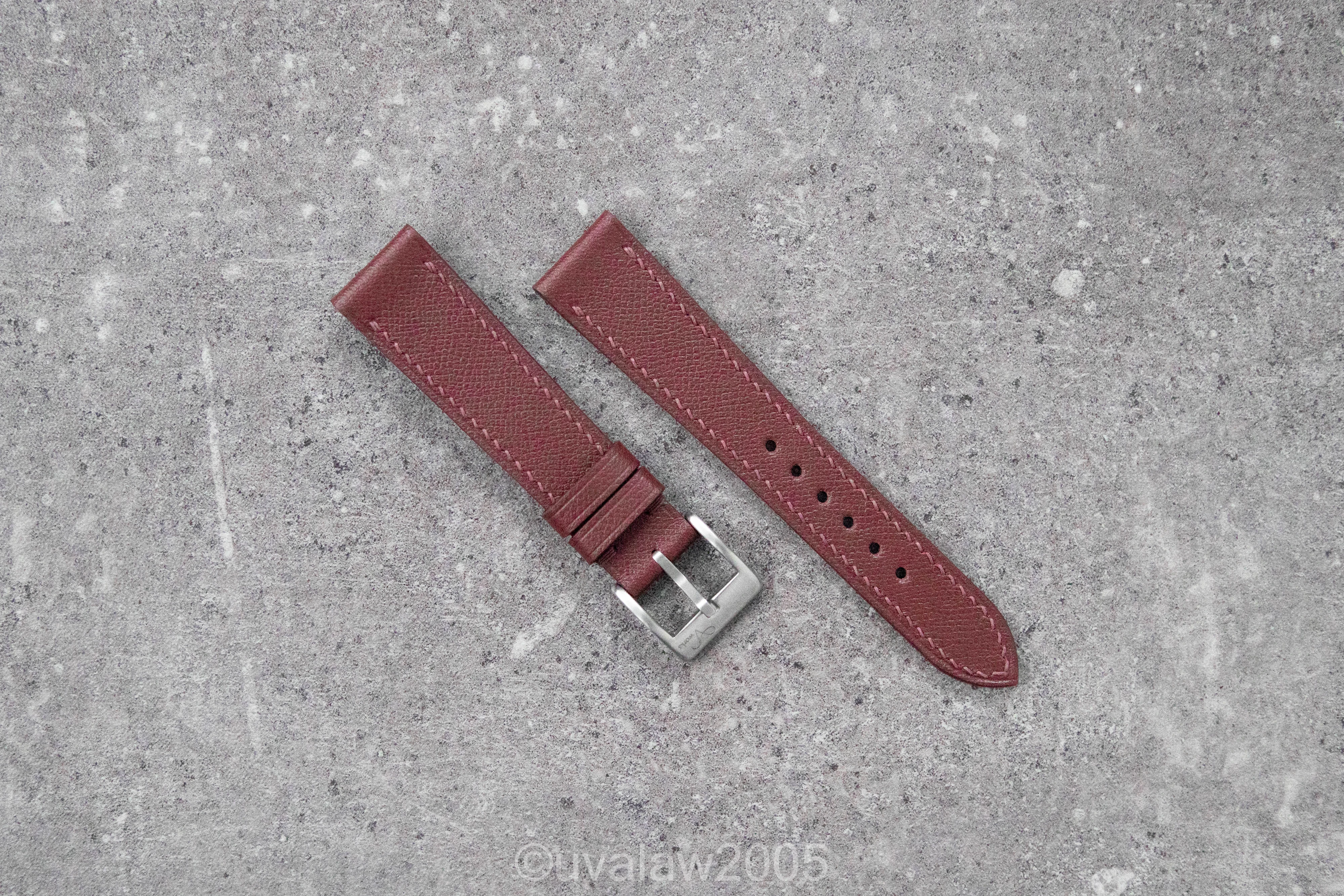 ยทFor sale is a brand new, unworn 19mm Burgundy Epsom Leather Strap from VWorks. Measures 110mm/75mm and tapers to 16mm.
