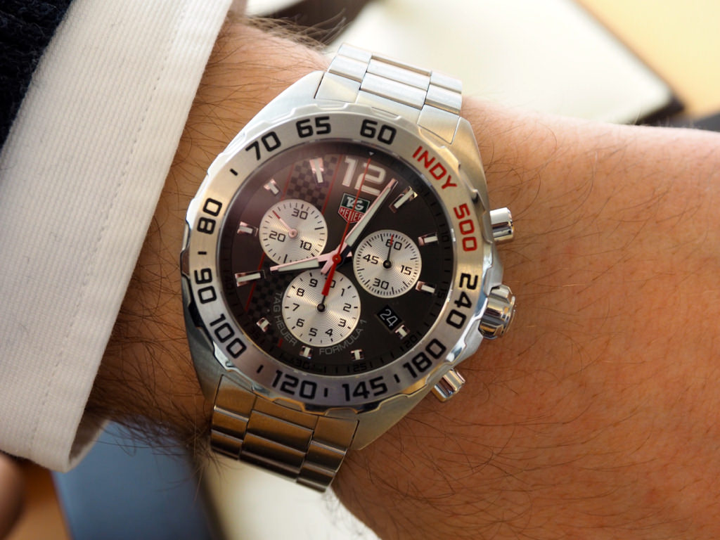 The new Indy 500 keeps thinks simple - a striking anthracite dial with a subtle chequered flag pattern and two bold red lines. The watch come with a very masculine looking steel strap fully articulated for maximum comfort.