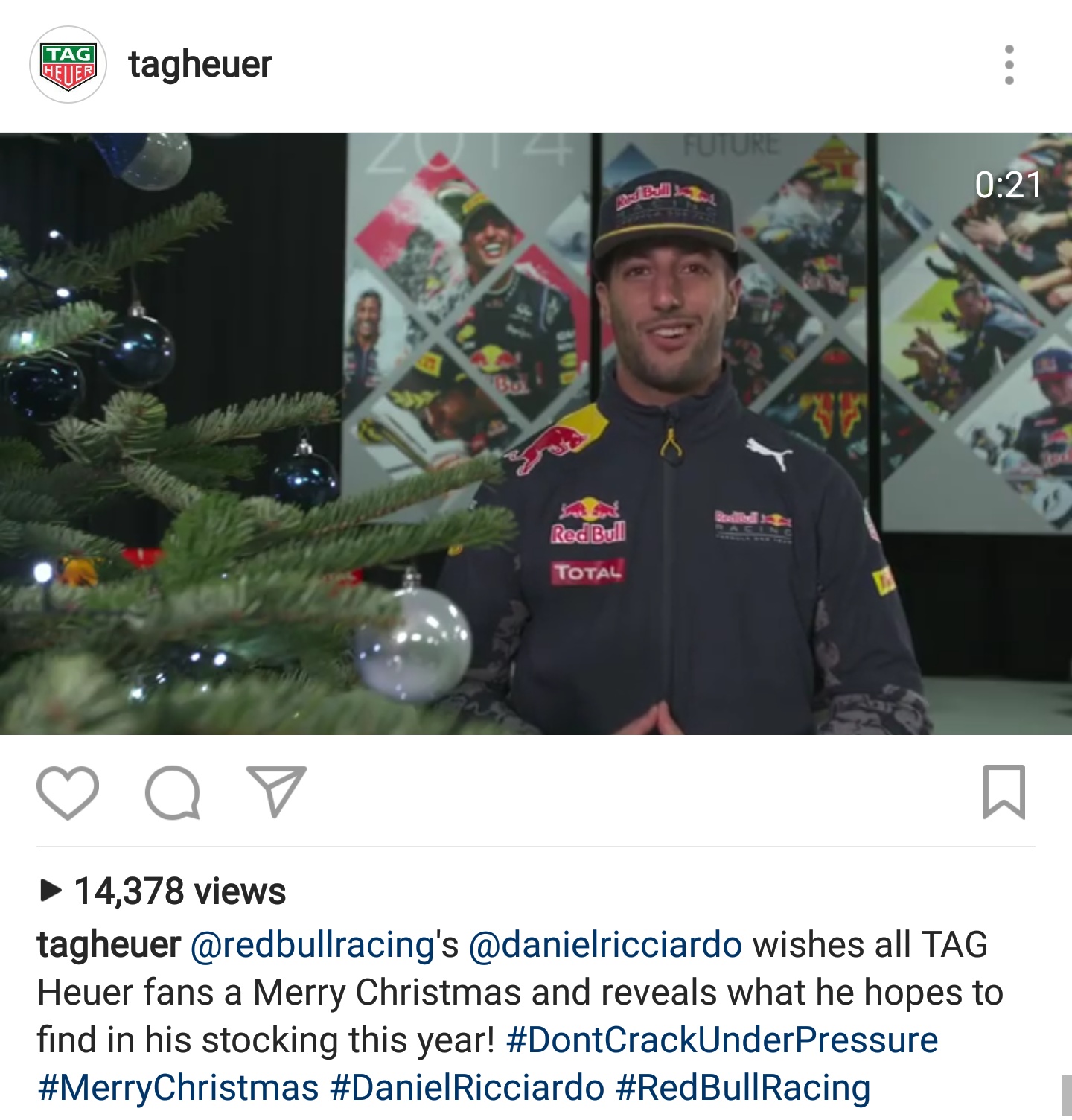 Posts 10,570 Likes 12,065 Hubert ·Dec 24, 2016·TAG Heuer Forums Moderator Season's greetings from RedBull; click to see the video: