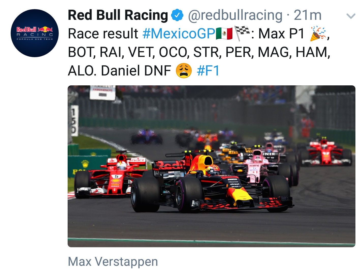 ··TAG Heuer Forums ModeratorCongratulations to Hamilton for another 1st place win, to Mercedes for another constructors championship, and to Verstappen for an incredible run despite the penalty!