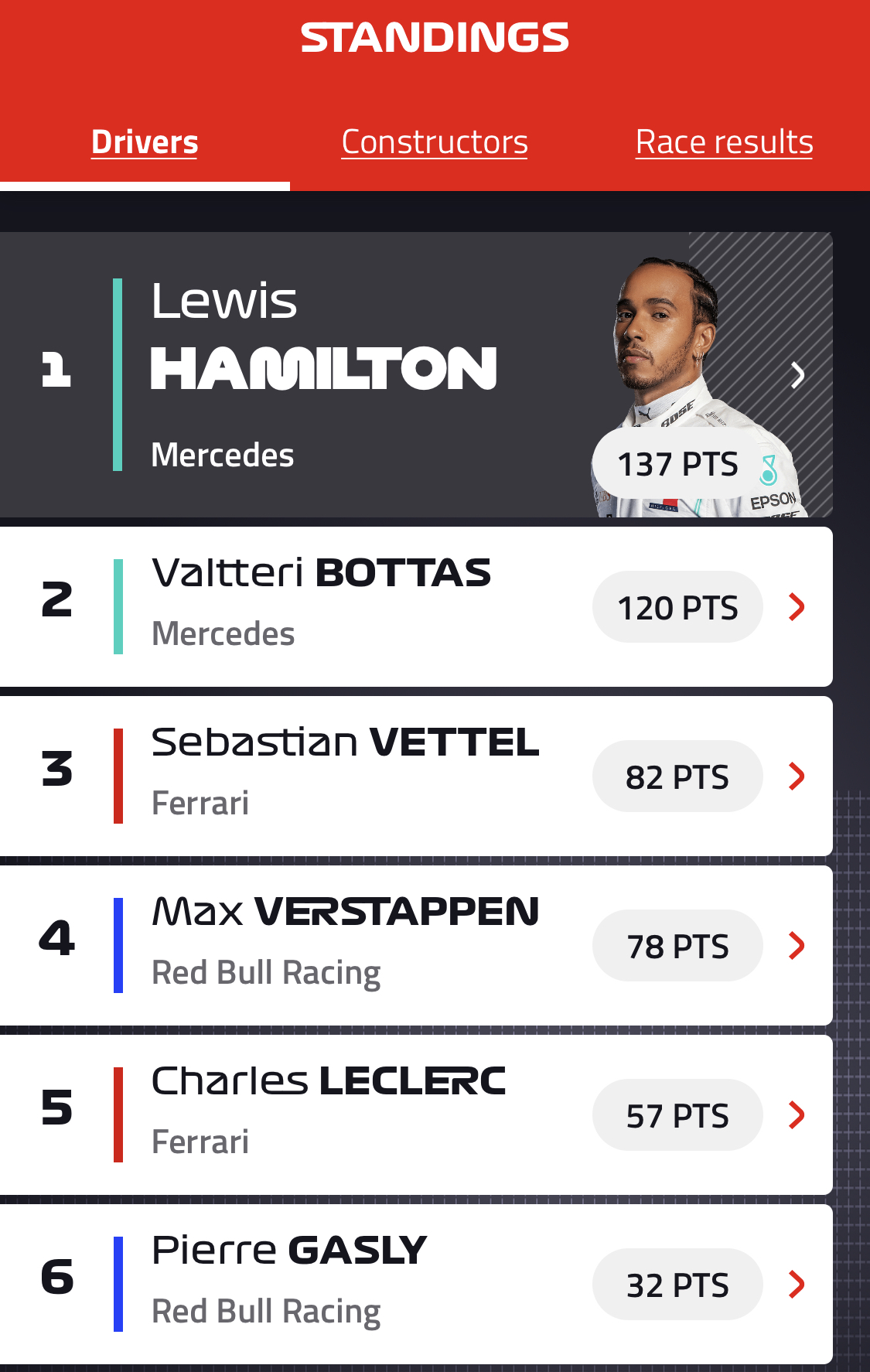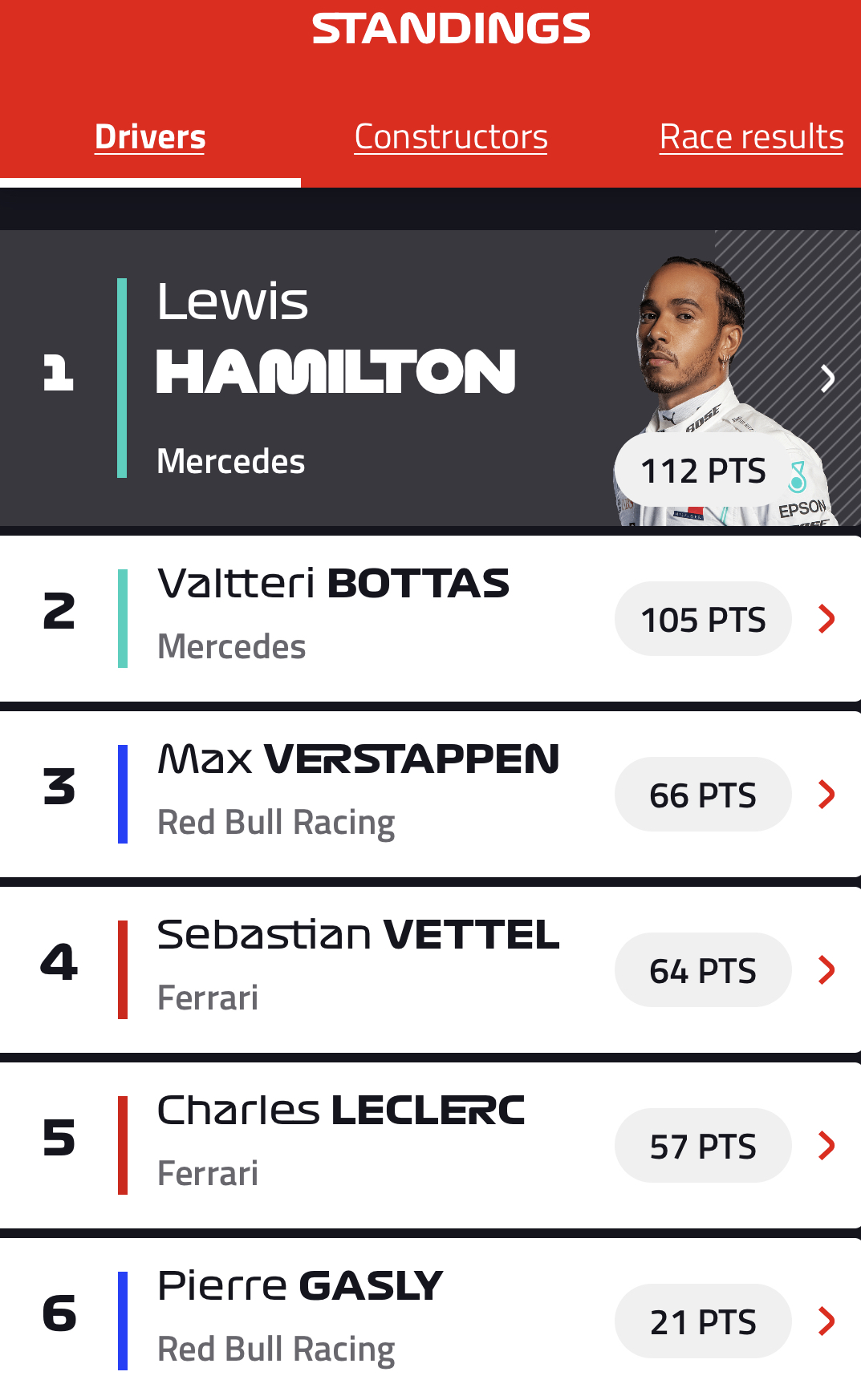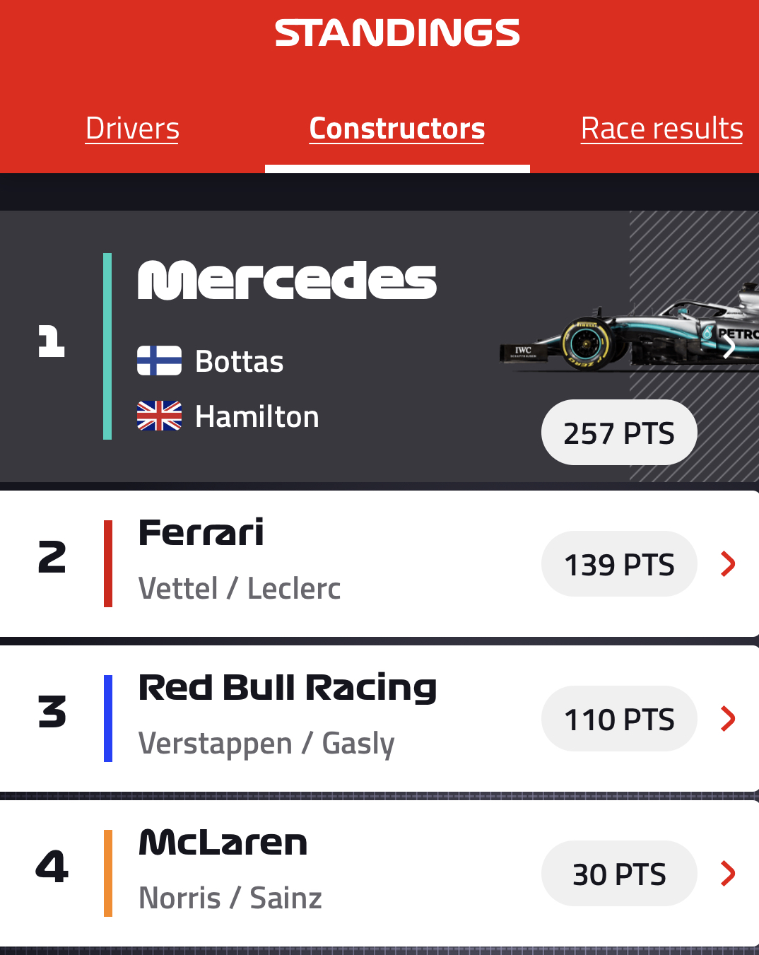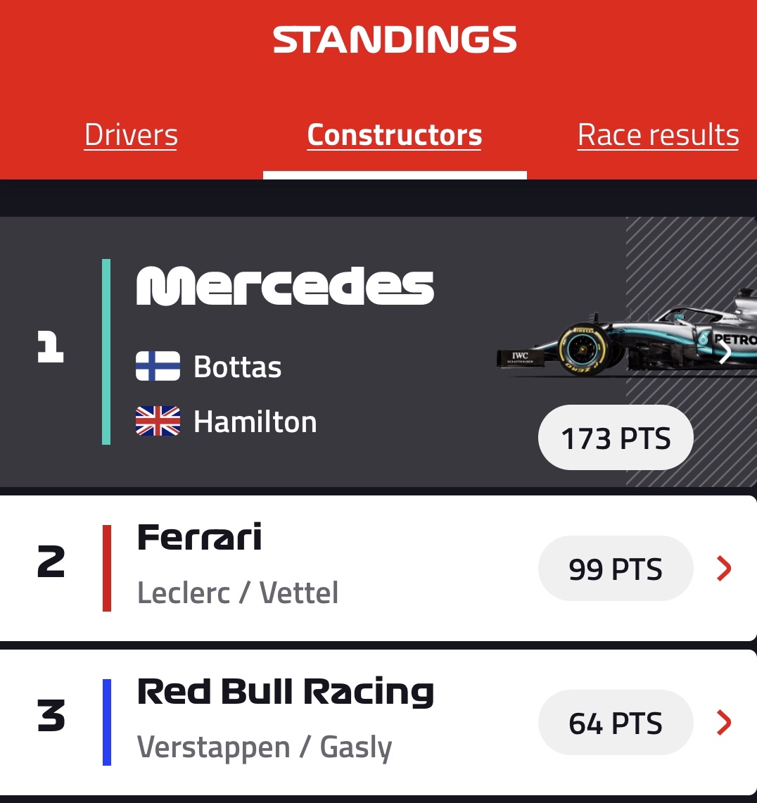 ·Ferrari gambled on its team orders thinking Vettel had the better pace than Leclerc. But Vettel wasn’t able to capitalize this chance with a couple of hard lock ups.. Although i know they don’t stand a chance with the pace and consistency of the two Silver Arrows. Ferrari even thought the slipstream + DRS at the 2nd pass of Vettel from Leclerc would bring them closer (again a disadvantage for Leclerc) Brilliant performance by Mercedes with a show off from a double pit change for Hamilton and Bottas, all blistering and clockwork like machinery. Wow!