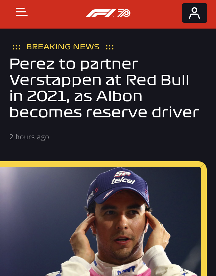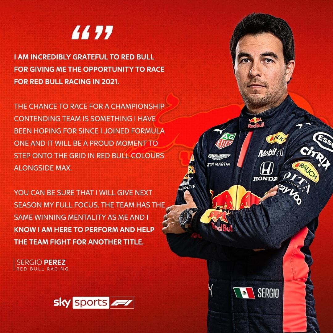 ··TAG Heuer Forums ModeratorJalopnik: Sergio Pérez Will Race For Red Bull In 2021: