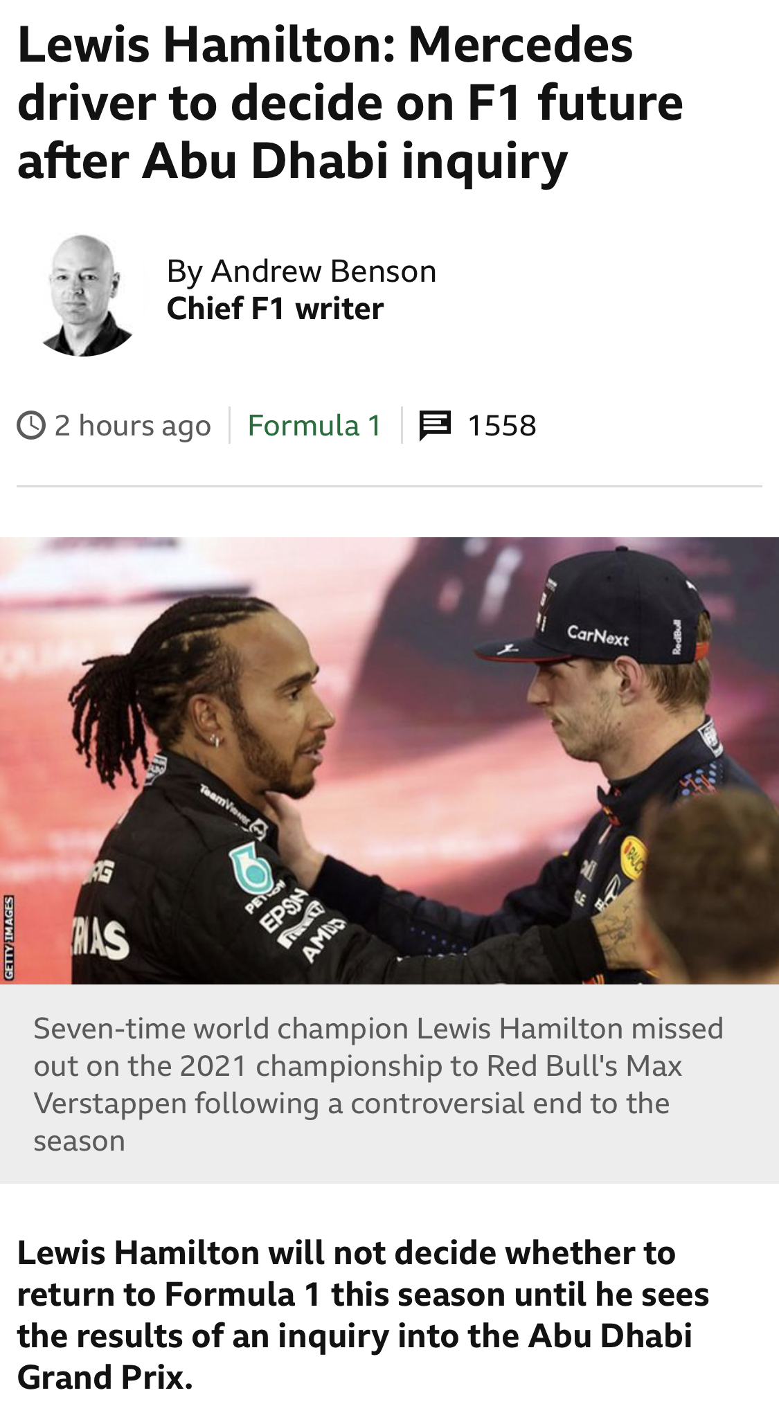 Any inside info if Sir LH will be back in 2022? 😕 And scoops sir @Albert-AMG ? 😗 He seems pretty silent. I hope he comes back 👍