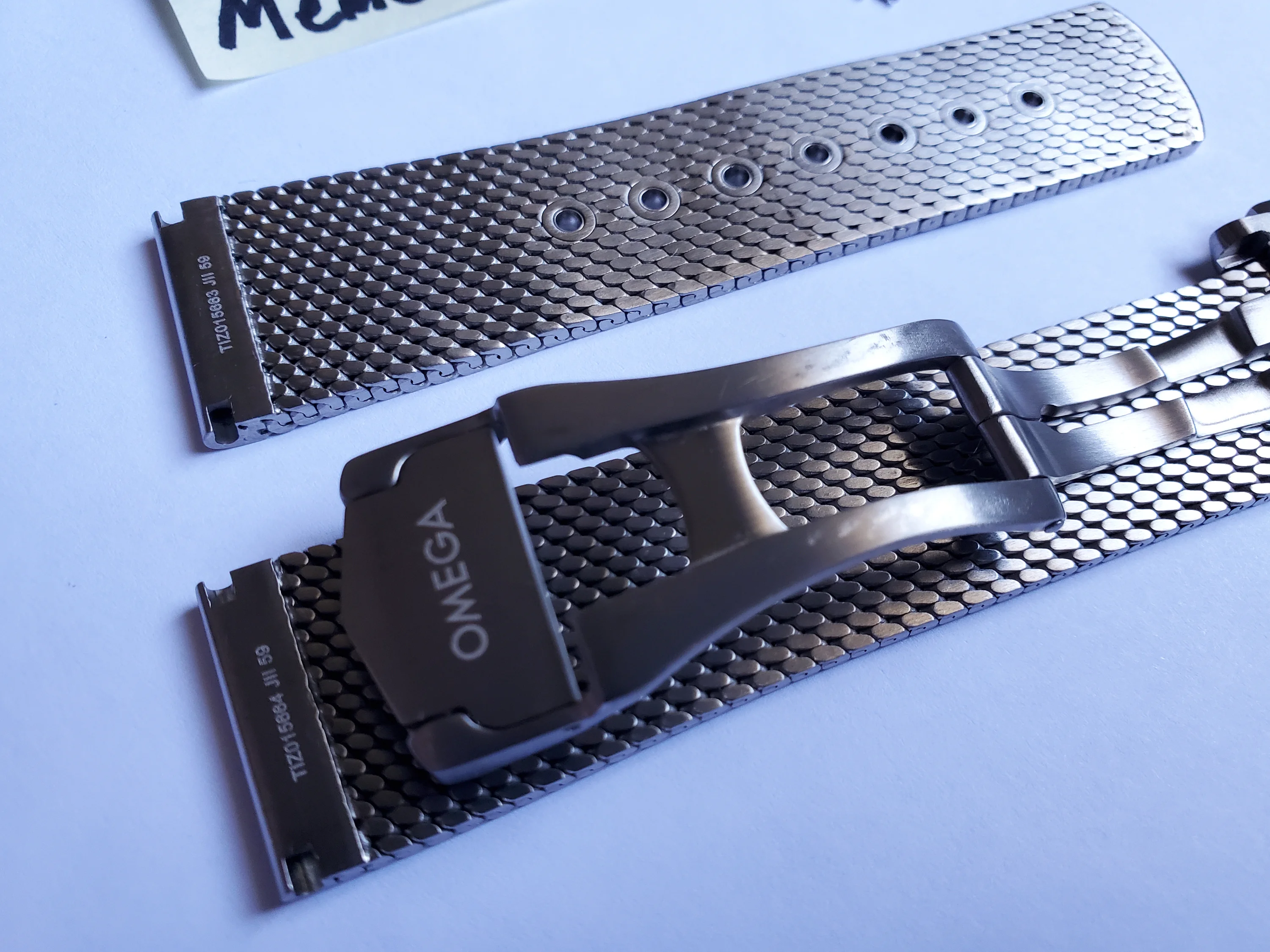Up for sale is a 20mm genuine Omega mesh strap/milanese bracelet in titanium. Short length. Tapers to 18mm. It's pre-owned and has some normal wear/light scratches. Comes with aftermarket 20mm spring bars.
