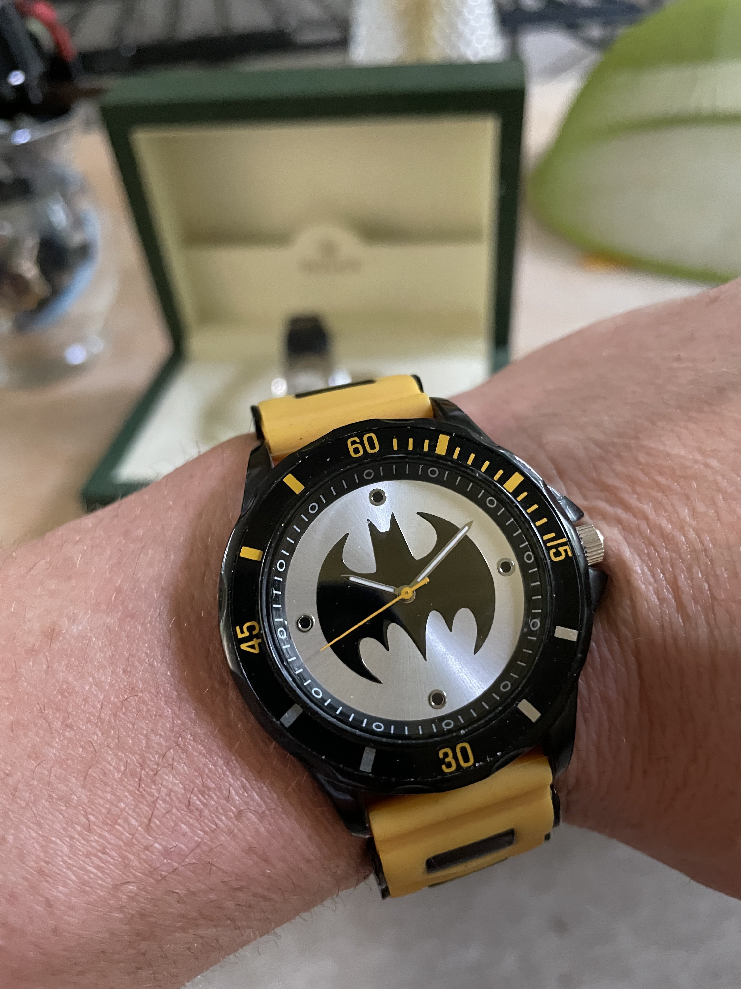 I always look at these mystery lots because they usually contain the odd gem. My interest is especially for the buckles. Imagine my surprise when I found a almost unused Batman! I will use this old Rolex box to store it.