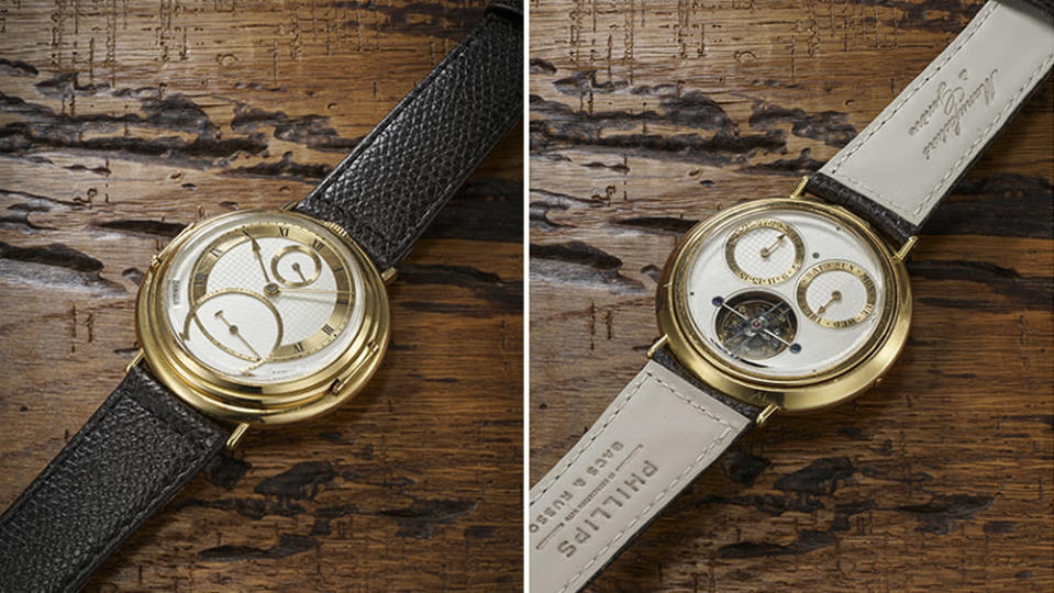 Among the three watches is a unique Spring Case Tourbillon in yellow gold, which will go for sale with a cryptic estimate of ‘in excess of CHF 1m (approx. £873,000)’.