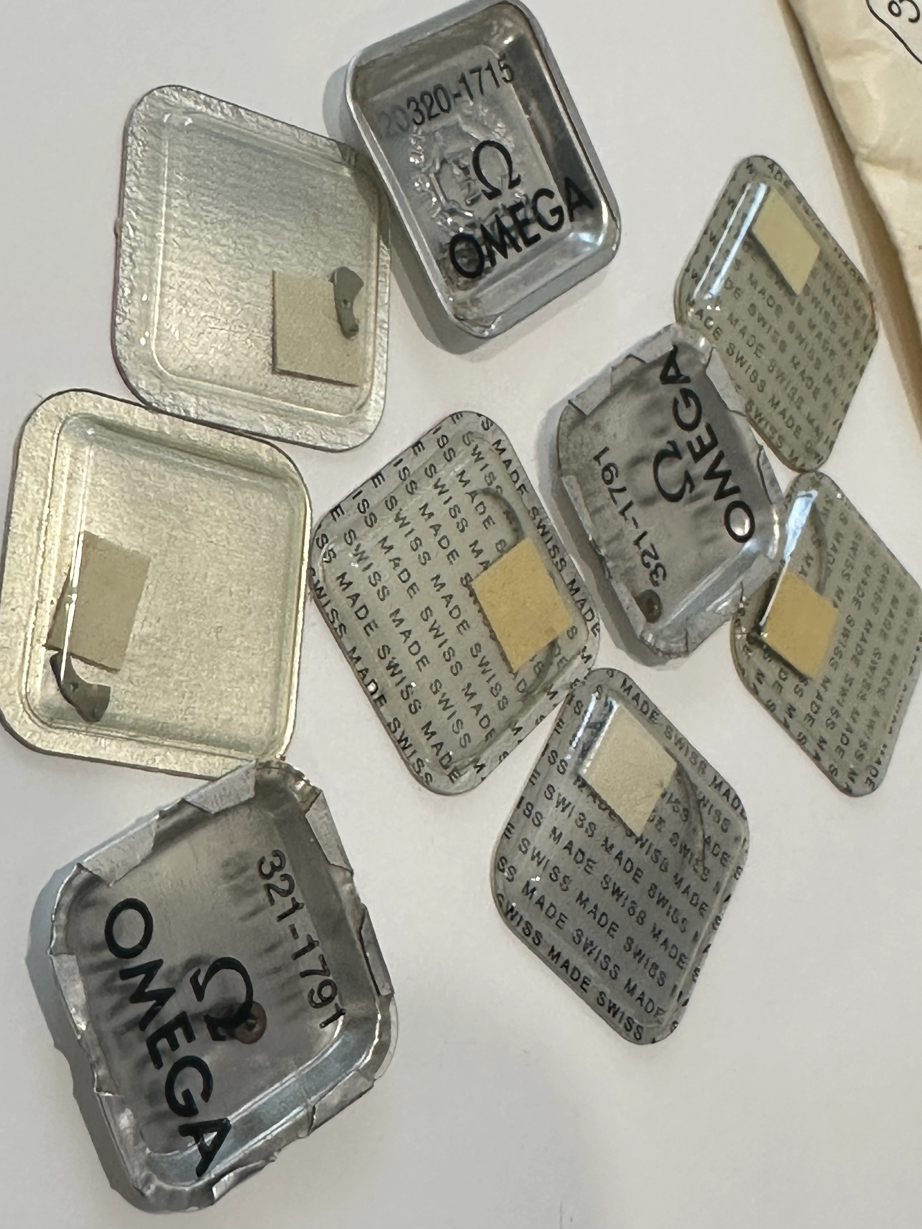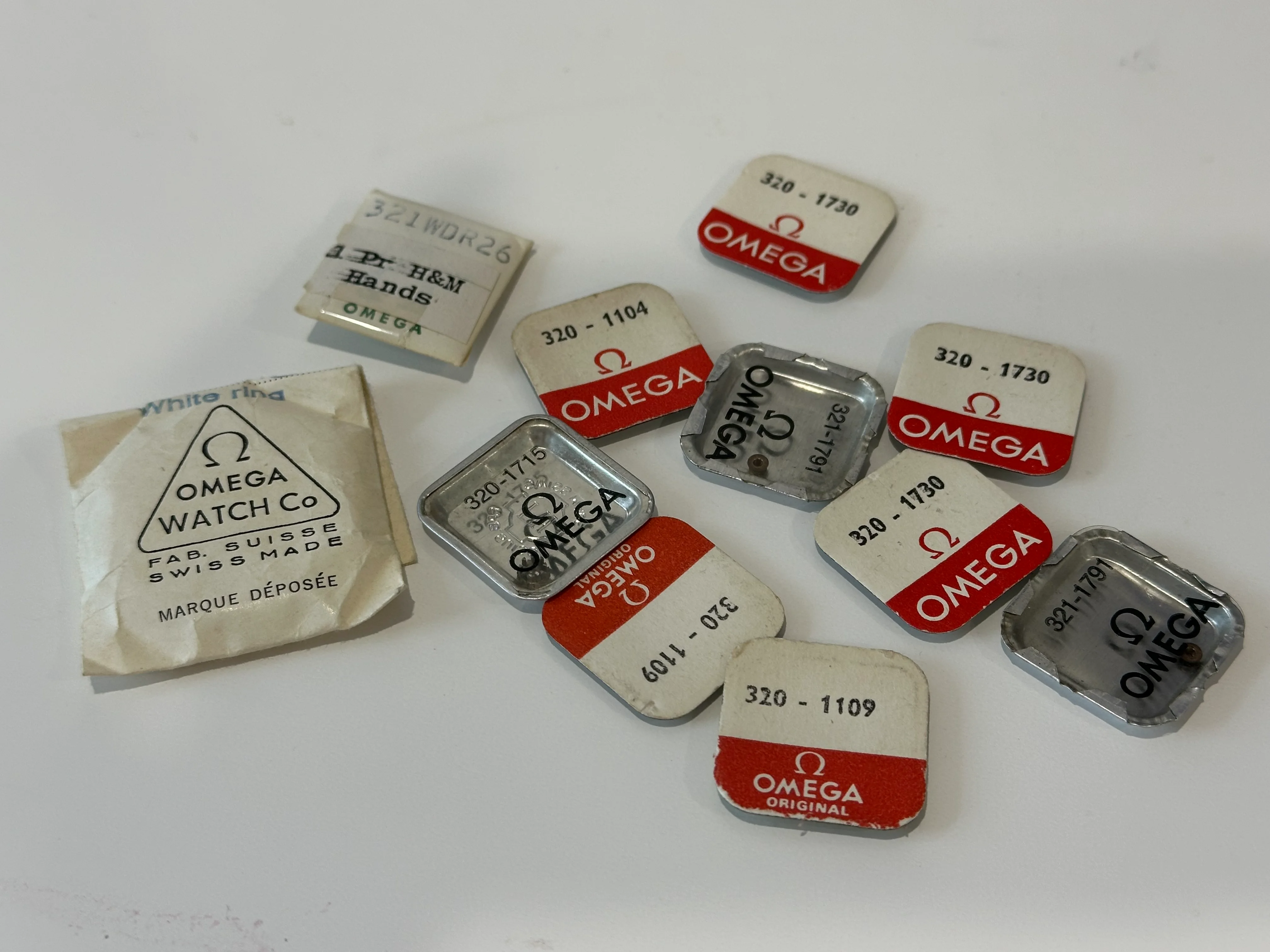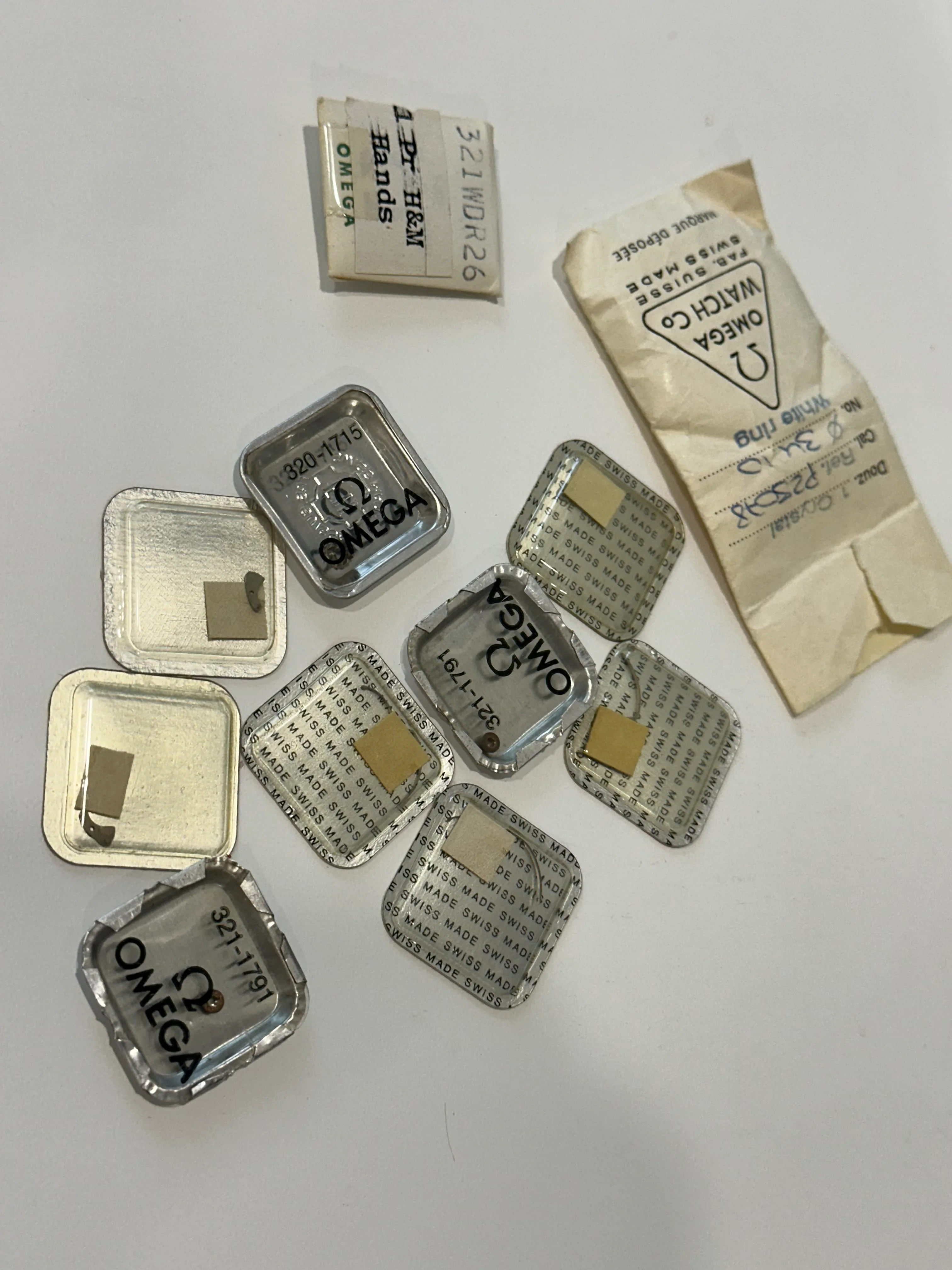 ยทHere is a NOS parts lot for 320 and 321 movements. Surplus to my needs as my watchmaker doesn't need them for the rebuild of my Speedy.