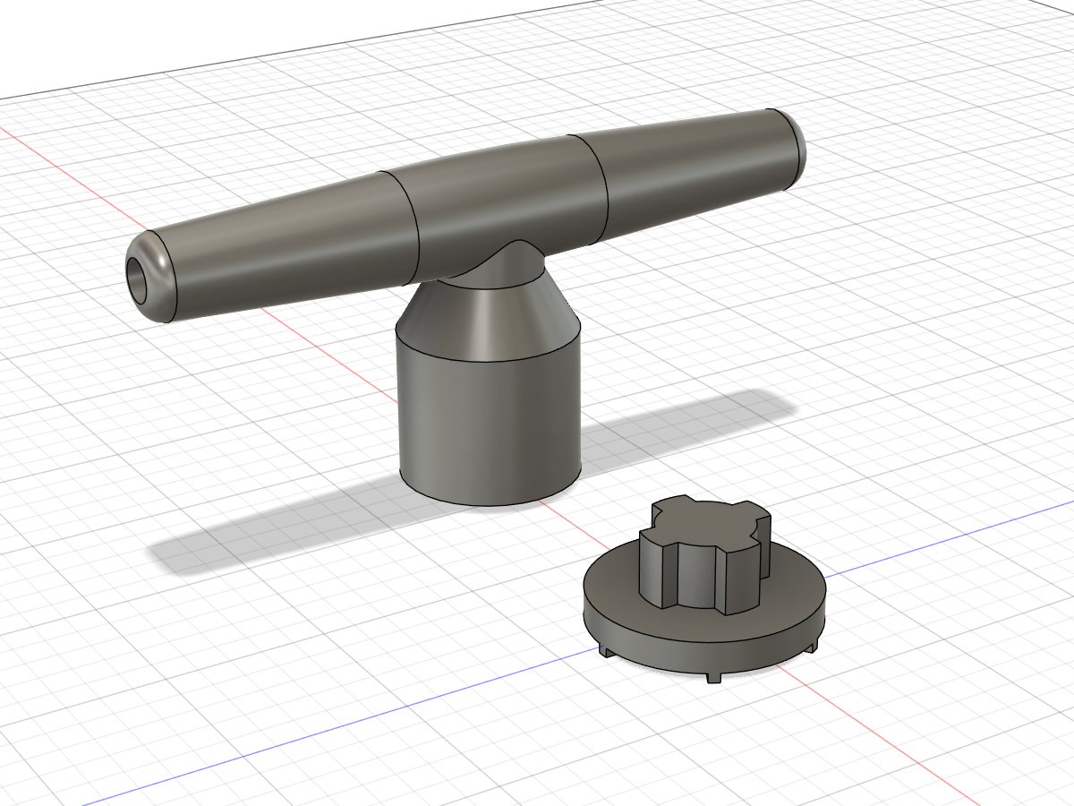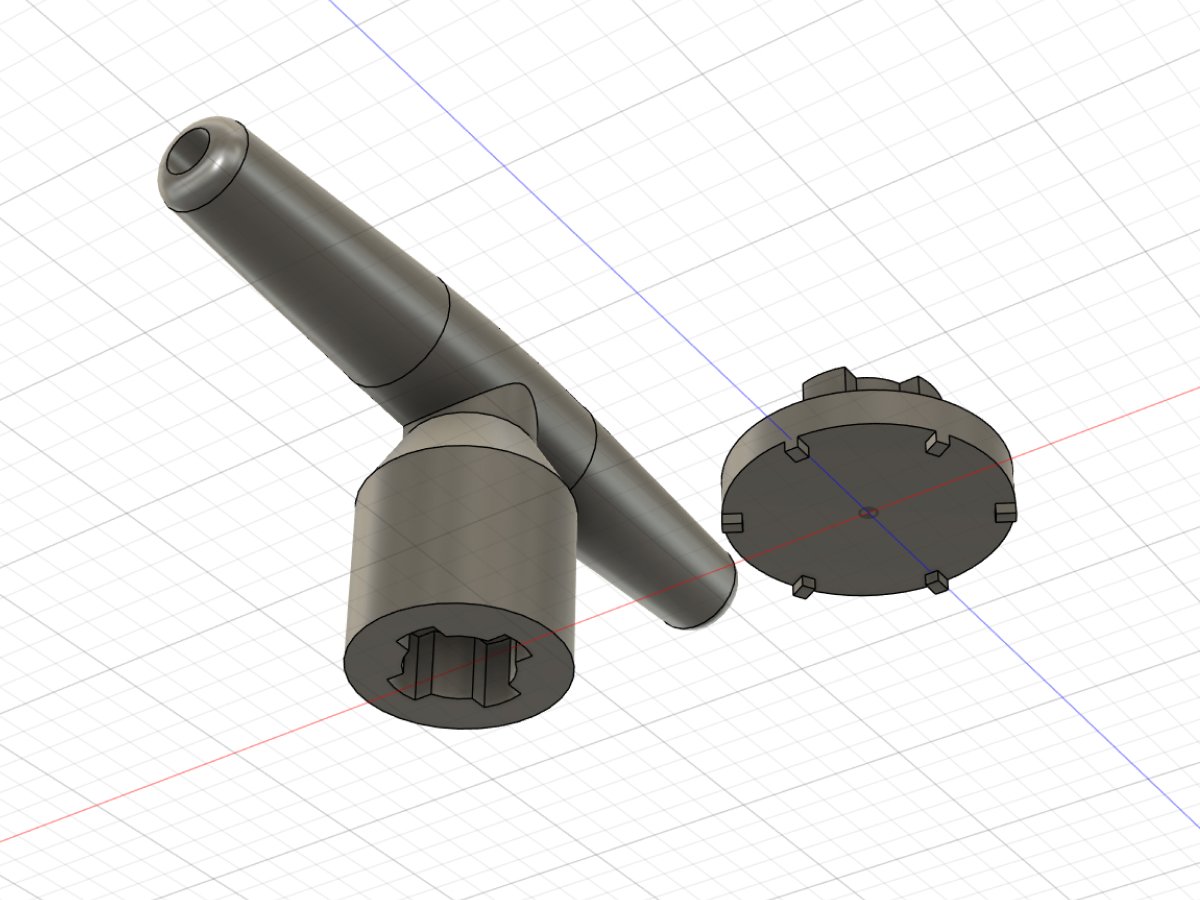 This is a handle and an opener I designed just to get the idea started. The openers are meant to be interchangeable, so they can be swapped out if damaged or used for different watches. They can be press fit into the handle, which should be doable even with loose tolerances. I'm also aware that the handle joint will not be the strongest, but it's just an idea that may change a lot in later revisions.