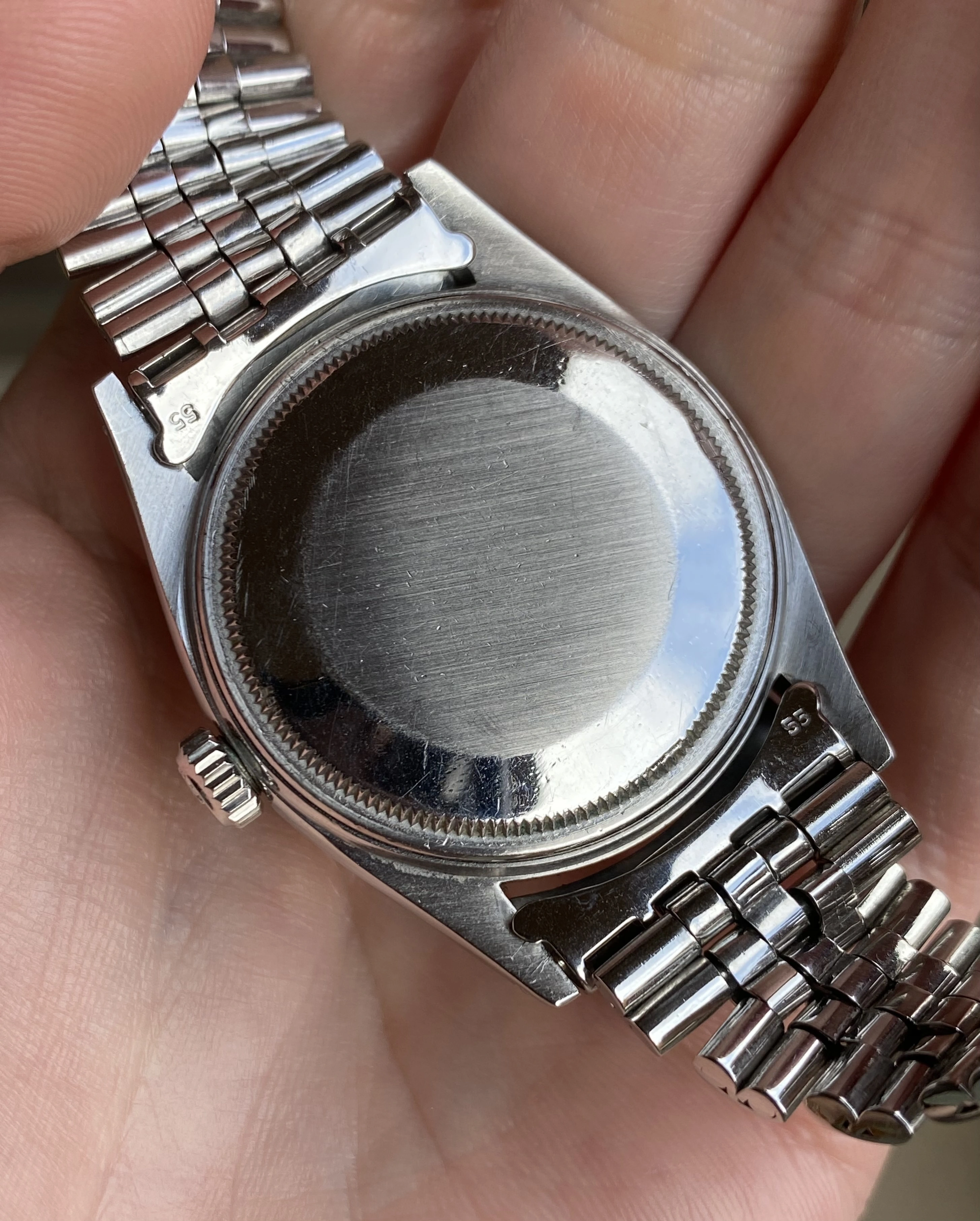 Case: Original, unpolished (or close to it) 36mm 1601 ref. is in nice condition. Features a white gold bezel that’s also in nice condition. Case is correctly marked 1601 between the lugs and serial number dates the watch to 1962.