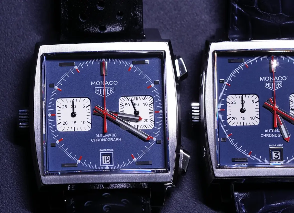 This is the best classic Monaco reissue. This picture illustrates the difference in the texture of the dials.
