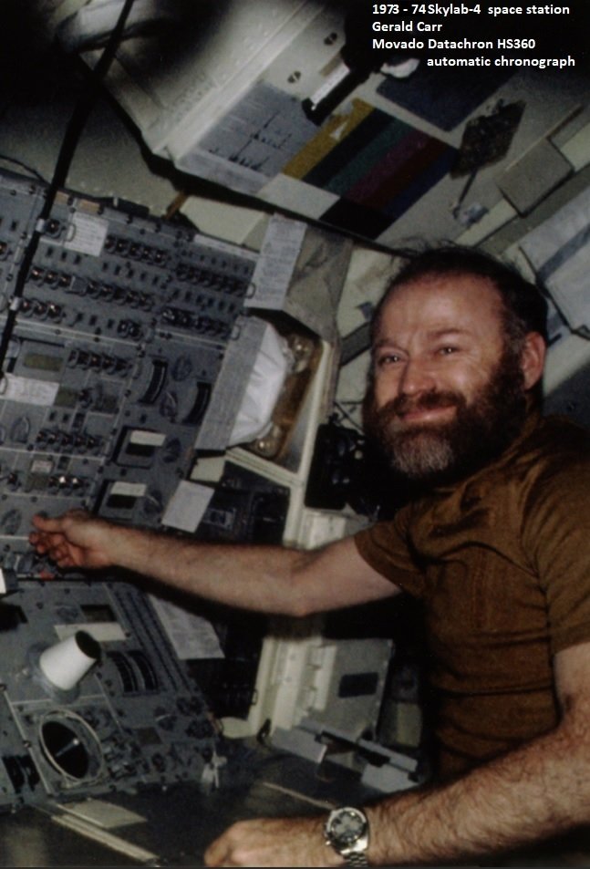 In August 1965, US Navy test pilot Charles "Pete" Conrad was the first NASA astronaut to wear an automatic wrist watch in space as he had chosen to wear his personal Glycine Airman automatic pilot watch during the Gemini V mission. The third manned Gemini spaceflight was intended as a long-duration simulation of an 8 days long Apollo flight... or as Pete Conrad called it post-flight " Eight Days in a Garbage Can ".