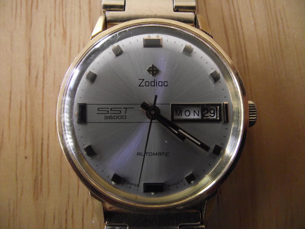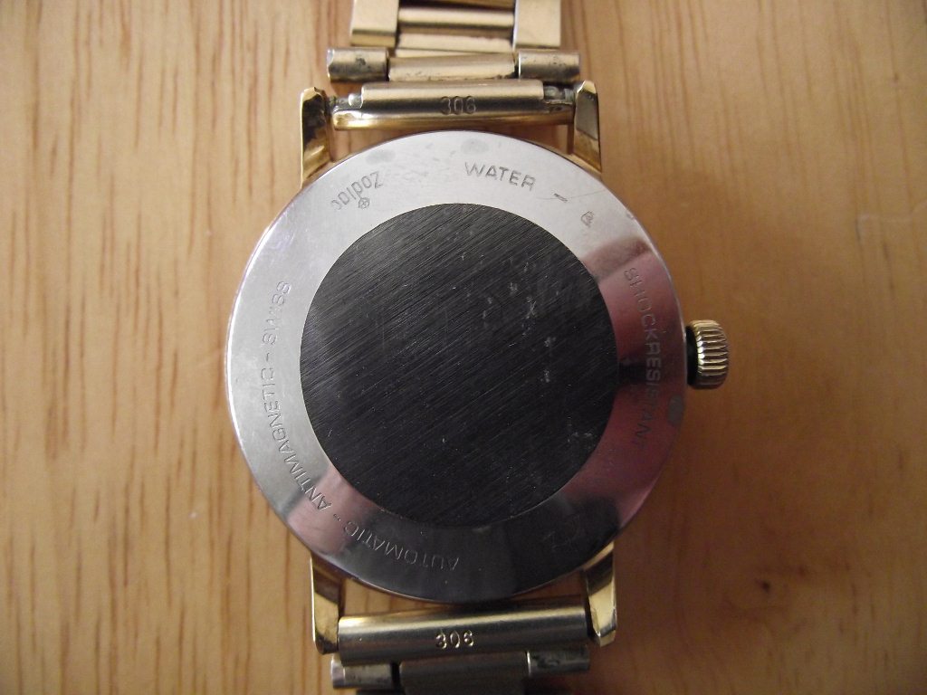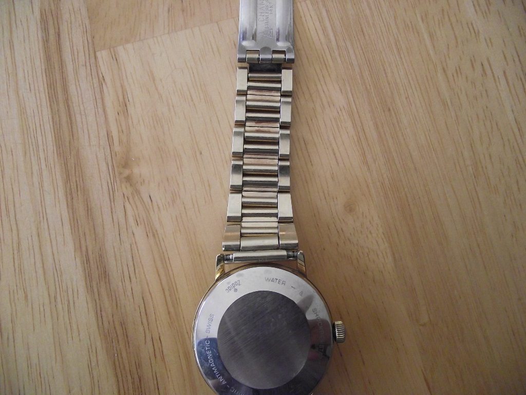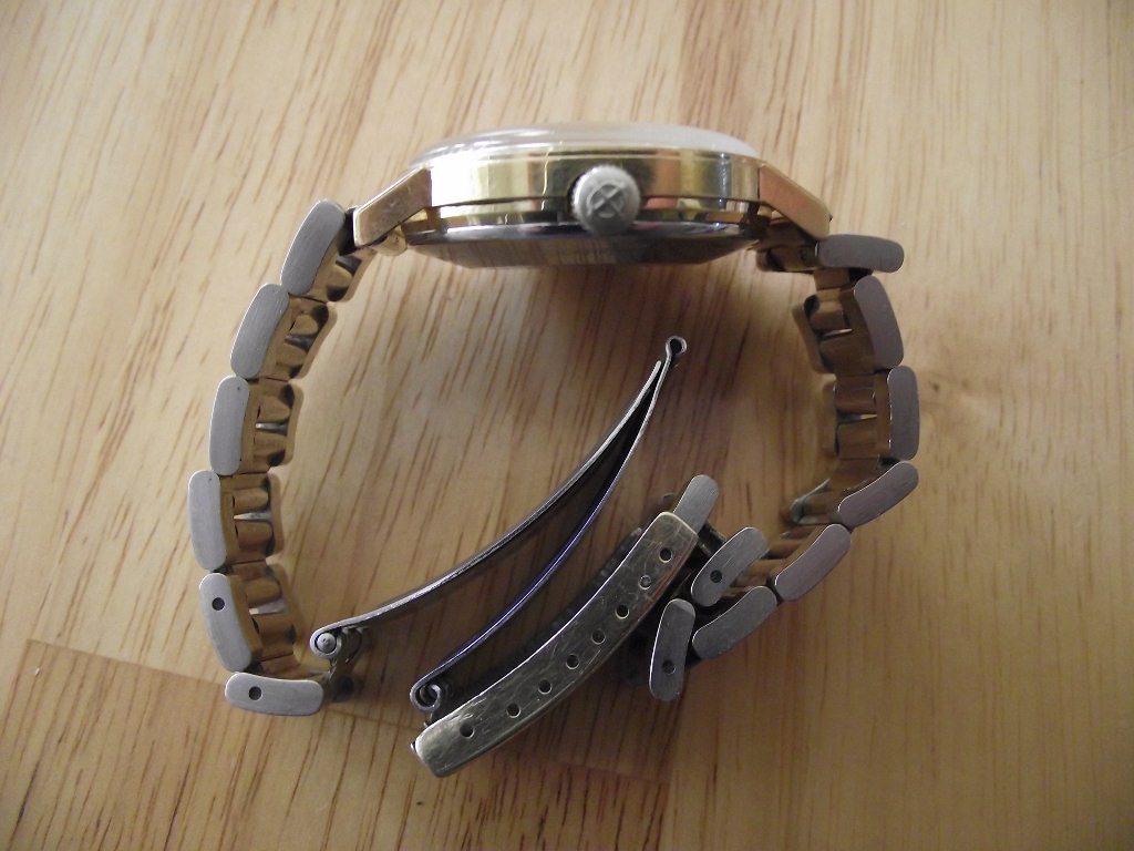 ·A Hi-Beat 36000bph watch, one of those Ebay long shots. 2 really poor pictures, from an "estate" supposedly not running. Well got the watch, it runs fine. 18kt electroplated case, 14kt filled original band, original crown, and a working quick set date. Kind of fun to watch the second hand, almost like an electric clock. Just enough "tic" to see a tick but nothing like other lower beat watches. Only thing I'm not sure of is the sides of the band are in SS and not plated. Top and bottom plus clasp are gold plated. Polished off or made that way?