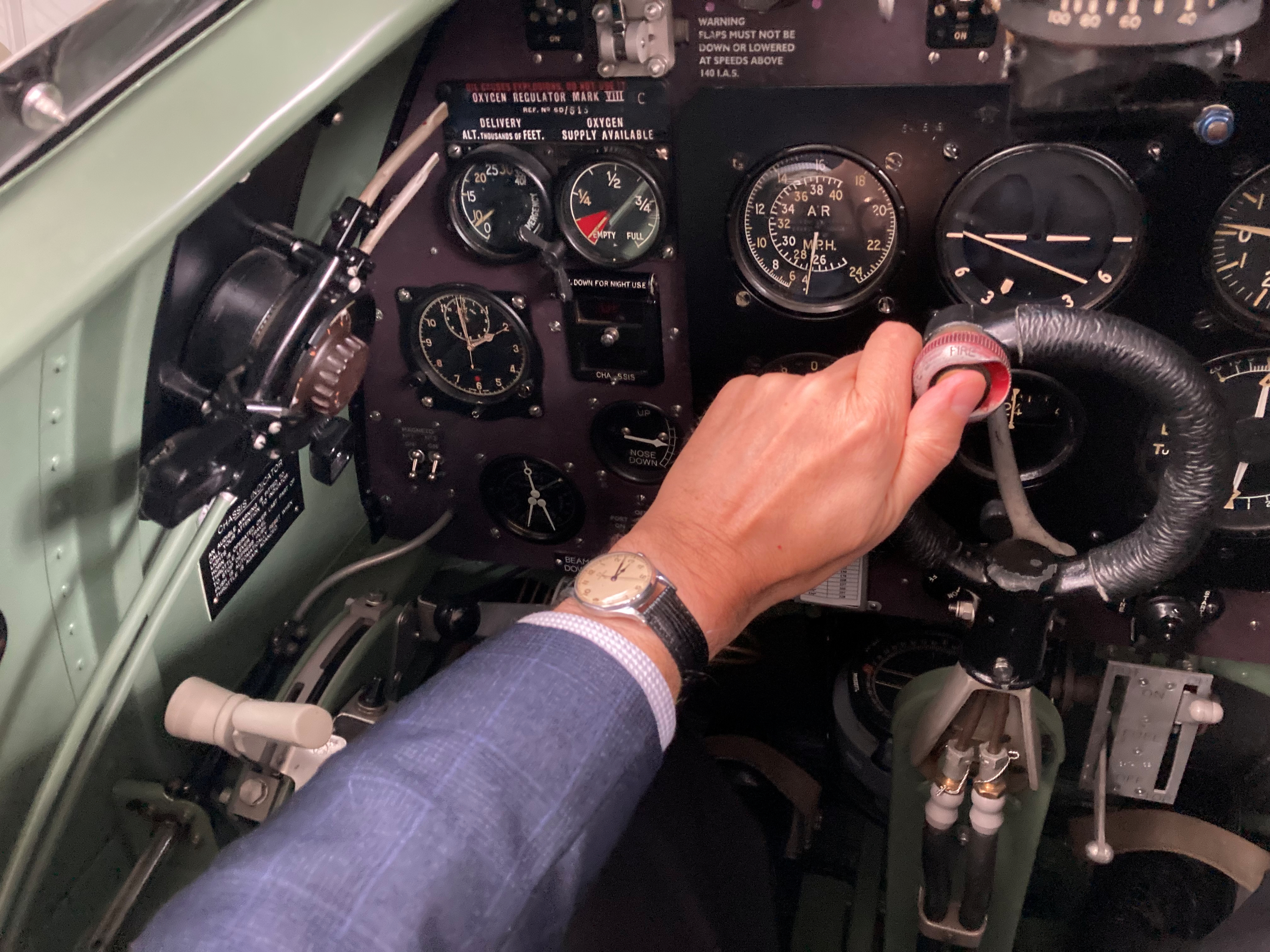 The red gear down flag indicators on the wings and the hand pump for raising the gear brought home the effort and focus these young men needed just to land and take off in these early variants. During the day a BF109 Hispano ‘’Messerschmitt’’ also put on a display which showed how hard it must have been to make and maintain visual contacts from the small claustrophobic cockpit. There is also not much between your feet and a large 85 gallon 100-Octane fuel tank.