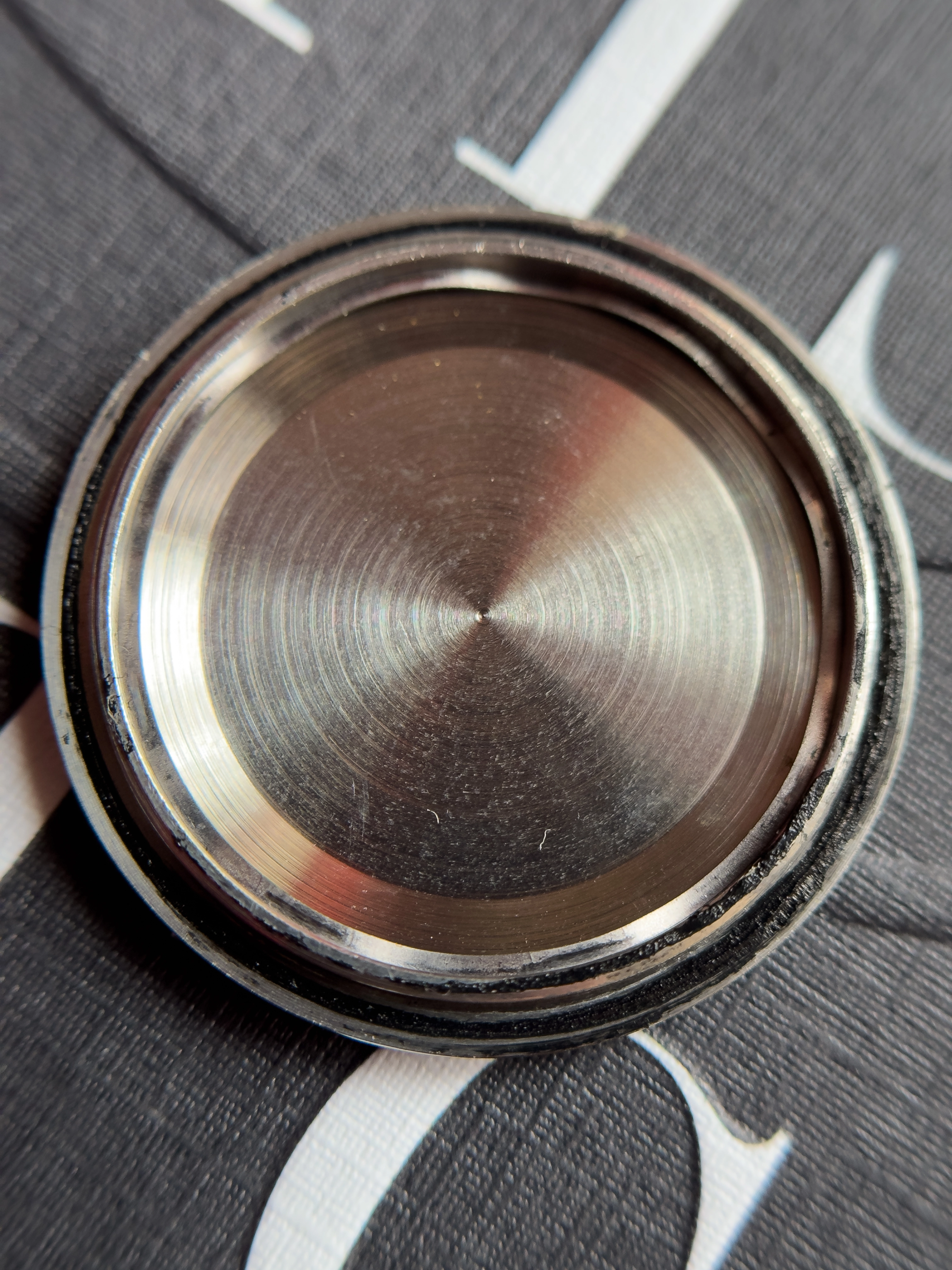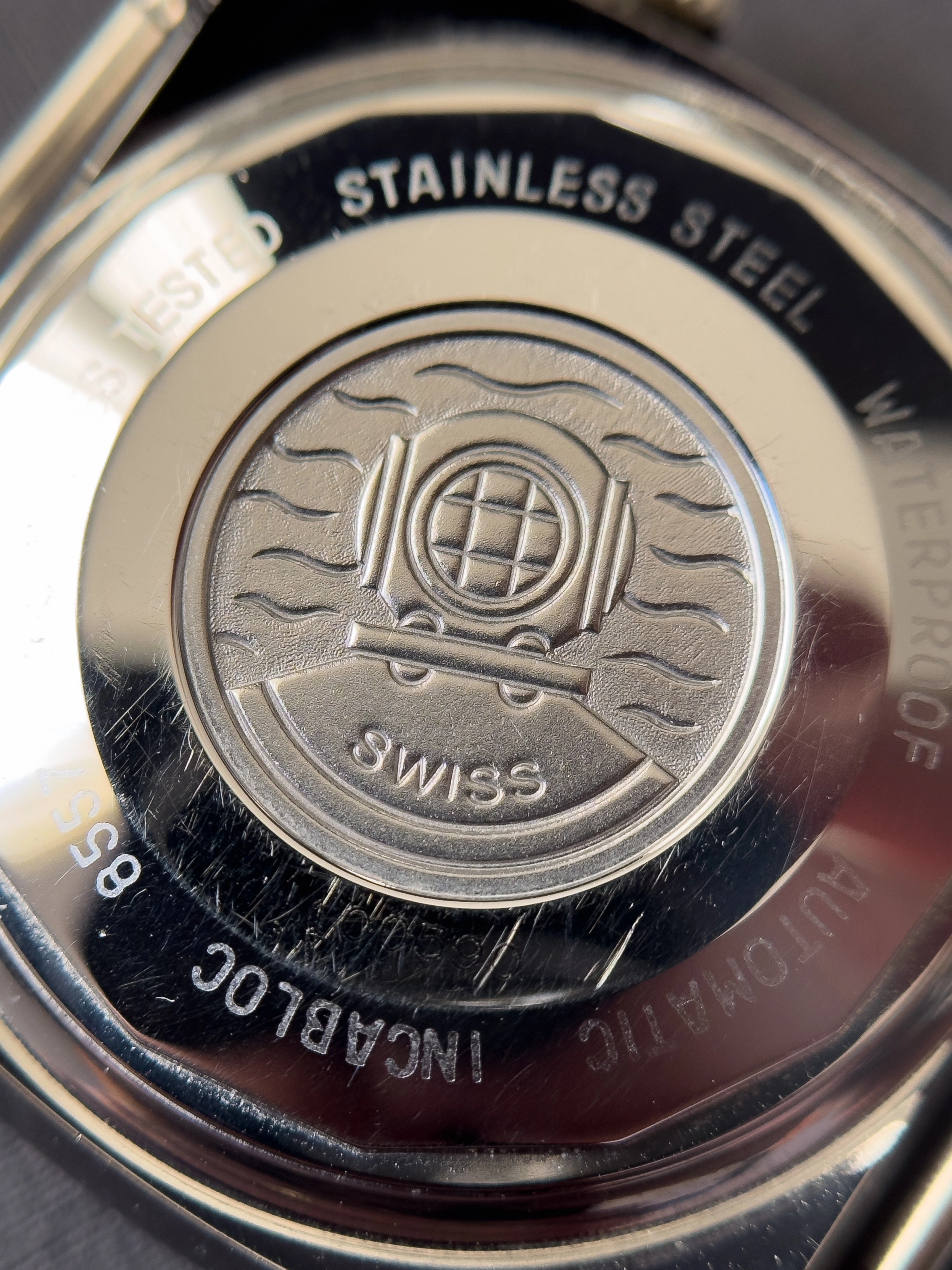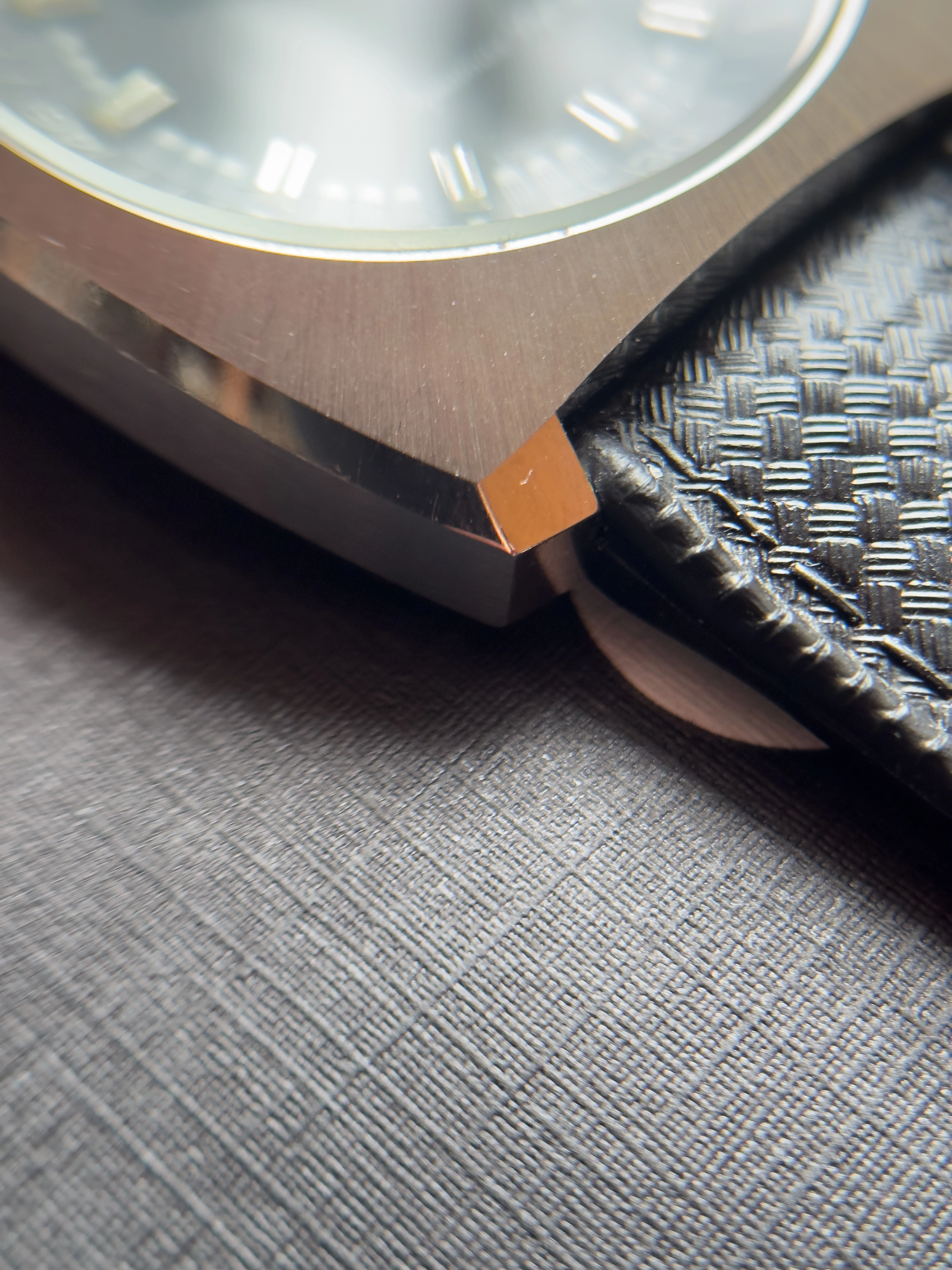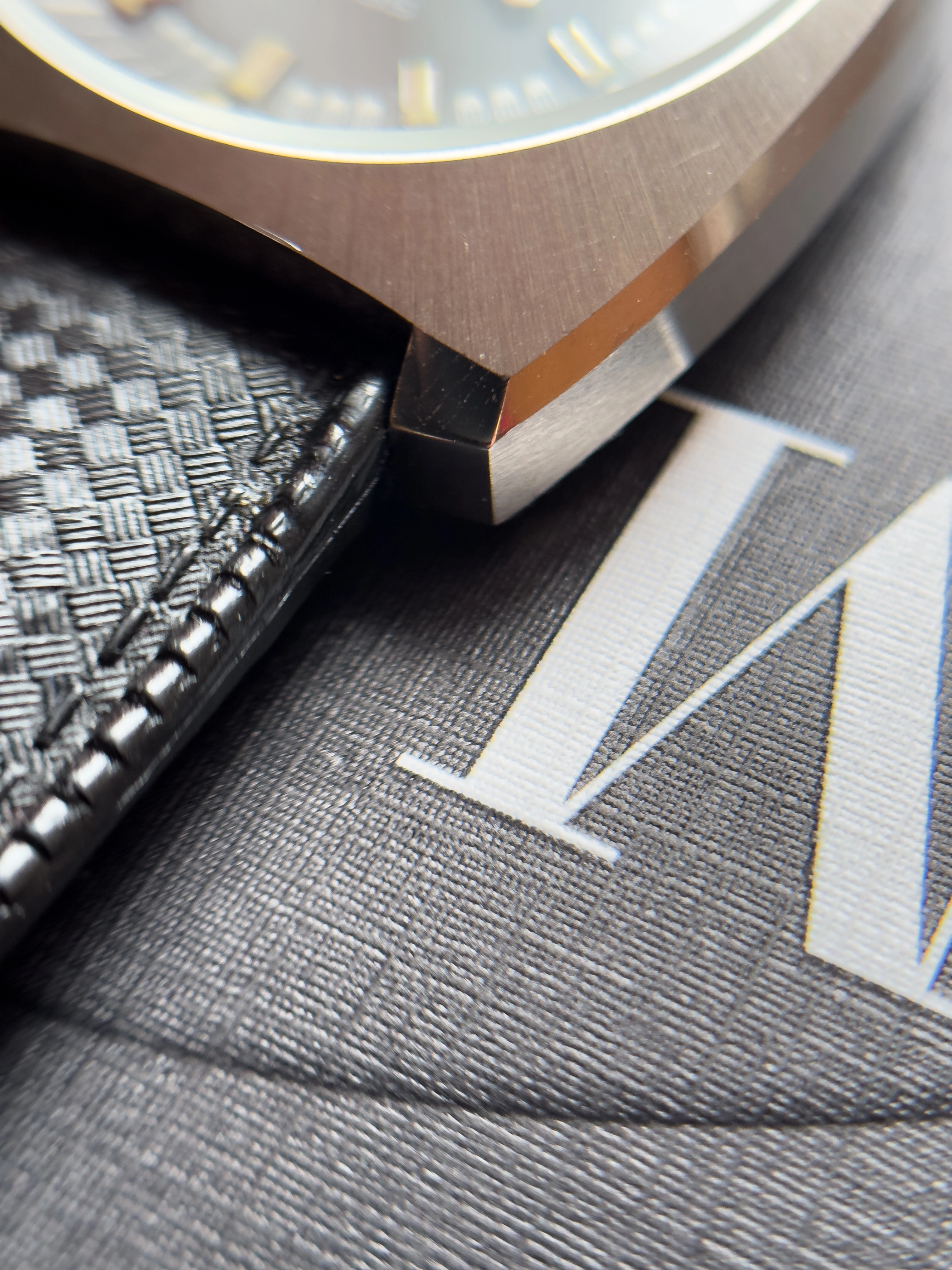 The watch is in excellent condition with the case being incredibly sharp, retaining its original lines and brushing. I have worn this watch occasionally over the near two years I have owned it, so it does have a few light wear marks, primarily on the caseback. The case is 40mm across (not including crowns) and 42mm lug to lug. It is a large watch, however it wears very comfortably on the wrist. The case is relatively slim giving it a nice compact feel with funky fun 70's presence on the wrist. The tritium on the dial is a nice yellow color while the tritium in the hands is a soft pale green. The bezel rotates how it should. The movement is an ETA 2783 and is very clean, as you can see in the photo below. It has not been serviced while in my possession but it runs well, winds smoothly, and I have not experienced any issues with it. The tropic strap is in great condition and feels soft/comfortable. The matte black dial with its texture, unique and funky minute markings, raised hour markers, and orange accents are all pleasing to look at and help give this piece fun wrist presence. The flat mineral crystal is free of any blemishes and is easy to view the fun design elements of this watch at just about any angle. It has been a little while since I have listed a watch for sale, so I feel a tad rusty writing this, but if you have any questions please don't hesitate to reach out to me.