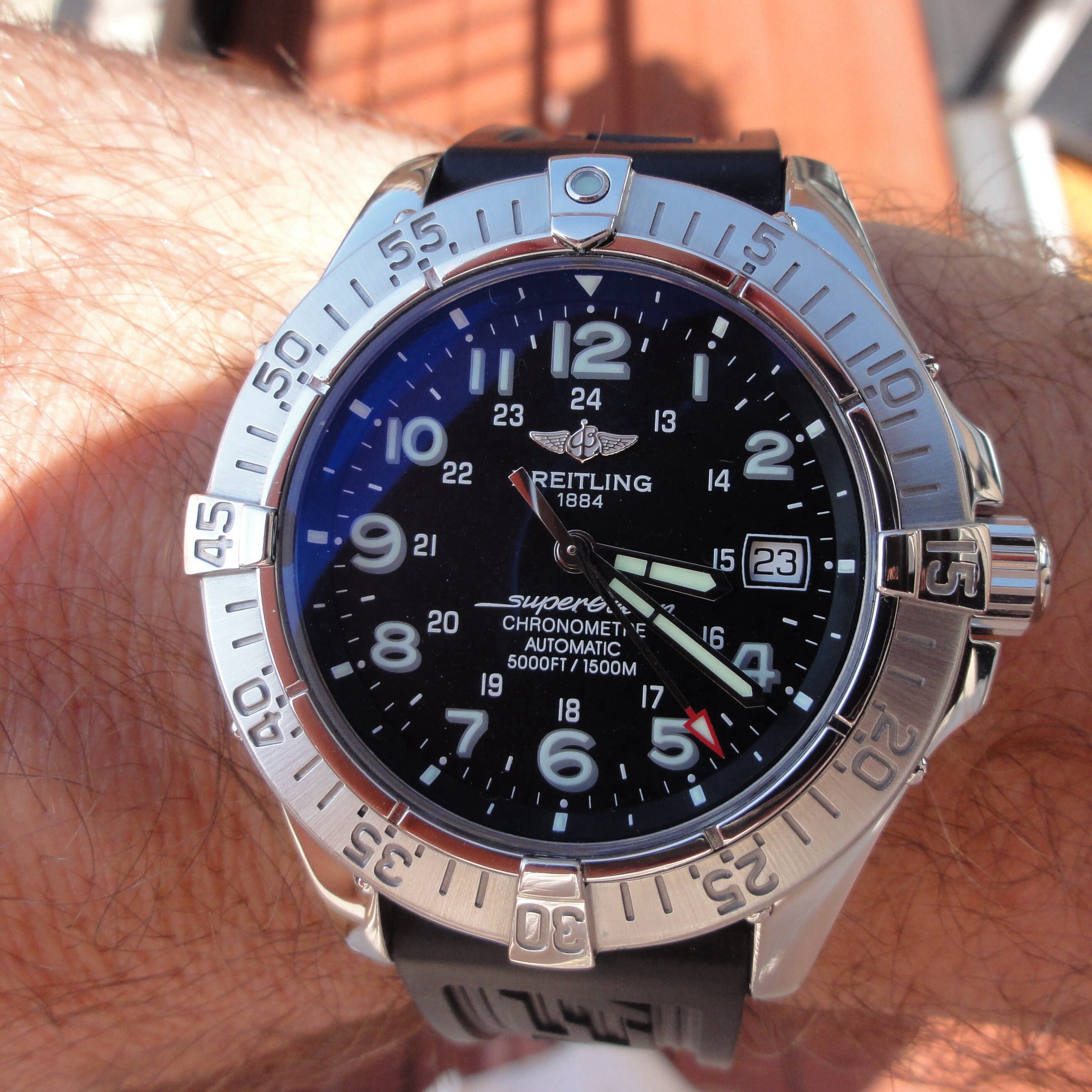 Posts 29,111 Likes 75,238 Archer 路May 15, 2015路Omega Qualified Watchmaker I'm glad you like it. I am not really into bling or TT, so this watch encompasses all the reasons I am not a Breitling fan... One of the few models they make that I like is the Super Ocean Heritage...much more of a classic diver style. Cheers, Al