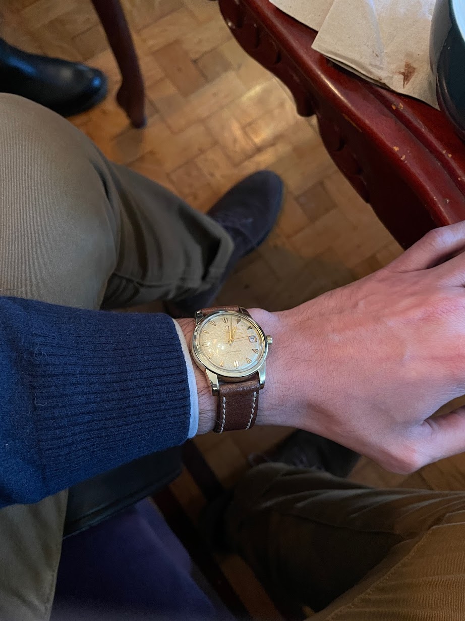 Given today's location I felt it was appropriate to opt for a vintage timepiece over contemporary. Here is the obligatory wrist shot.